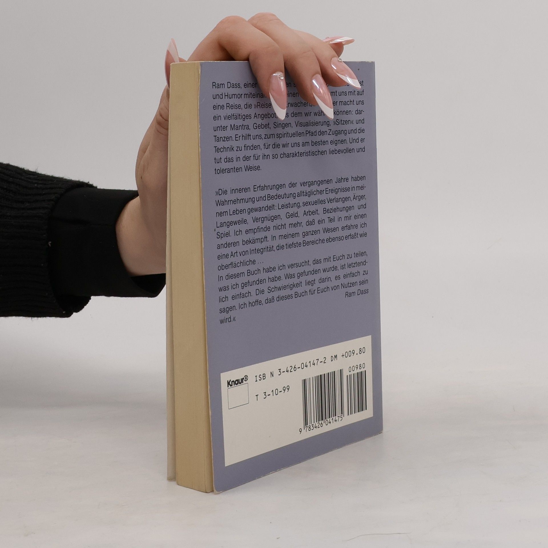 Ram Dass, einer der wenigen spirituellen Lehrer, die Geist und Humor miteinander vereinen können, nimmt uns mit auf eine Reise, die "Reise des Erwachens" - und er macht uns ein vielfältiges Angebot, aus dem wir wählen können: darunter Mantra, Gebet, Singen, Visualisierung, "Sitzen" und Tanzen. Er hilft uns, zum spirituellen Pfad den Zugang und die Technik zu finden, für die wir uns am besten eignen. Und er tut das in der für ihne so charakteristischen liebevollen und toleranten Weise.