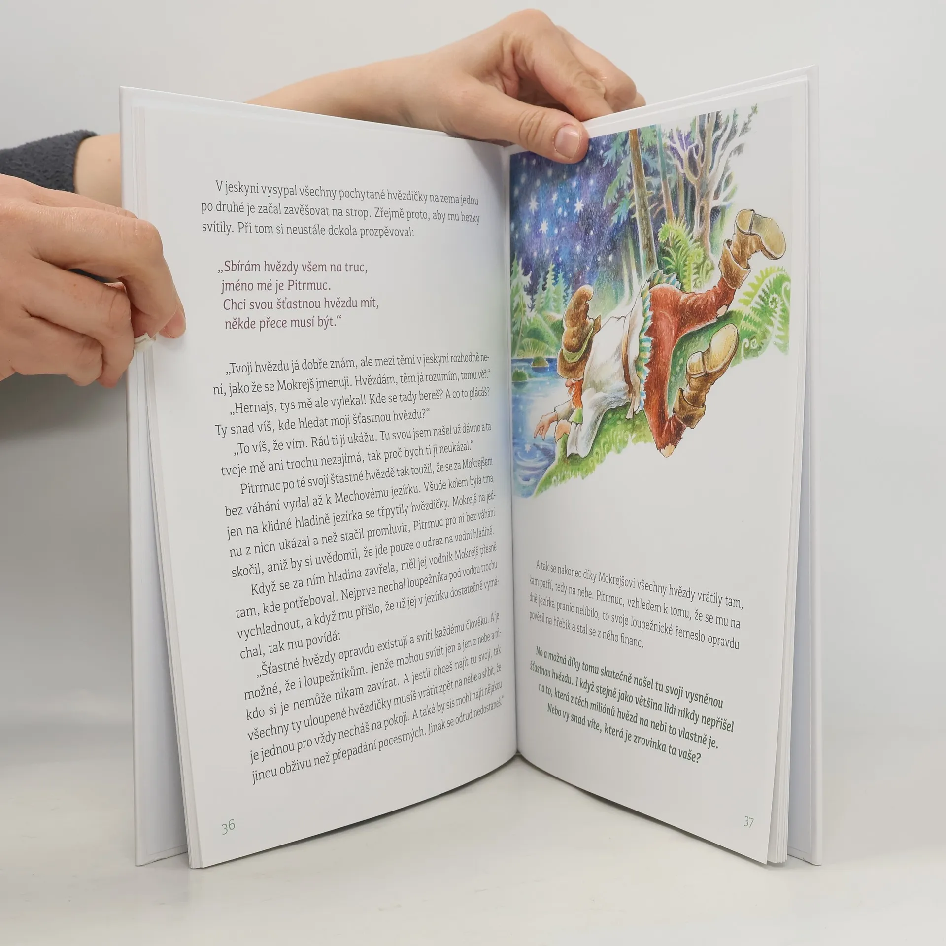 Tyto pohádkové příběhy se odehrávají na tajuplných místech čarokrásných hor v okolí prastarého jezírka. Příroda je zde od nepaměti divoká a nedotčená. Hustý lesní porost brání v přístupu nezvaným návštěvníkům. Díky této knize se na tato místa můžete nejen podívat, ale budete též moci společně se všemi pohádkovými bytostmi prožívat jejich napínavé příběhy. V této krásné, bohatě ilustrované knize najdete i část Krakonošova herbáře. Jedná se o rostliny, nebo chcete-li čarobejlí, rostoucí na území Krkonoš, které si pán hor osobně nasbíral. Pomocí klíče umístěného na konci knihy se můžete naučit tyto rostliny rozeznávat.