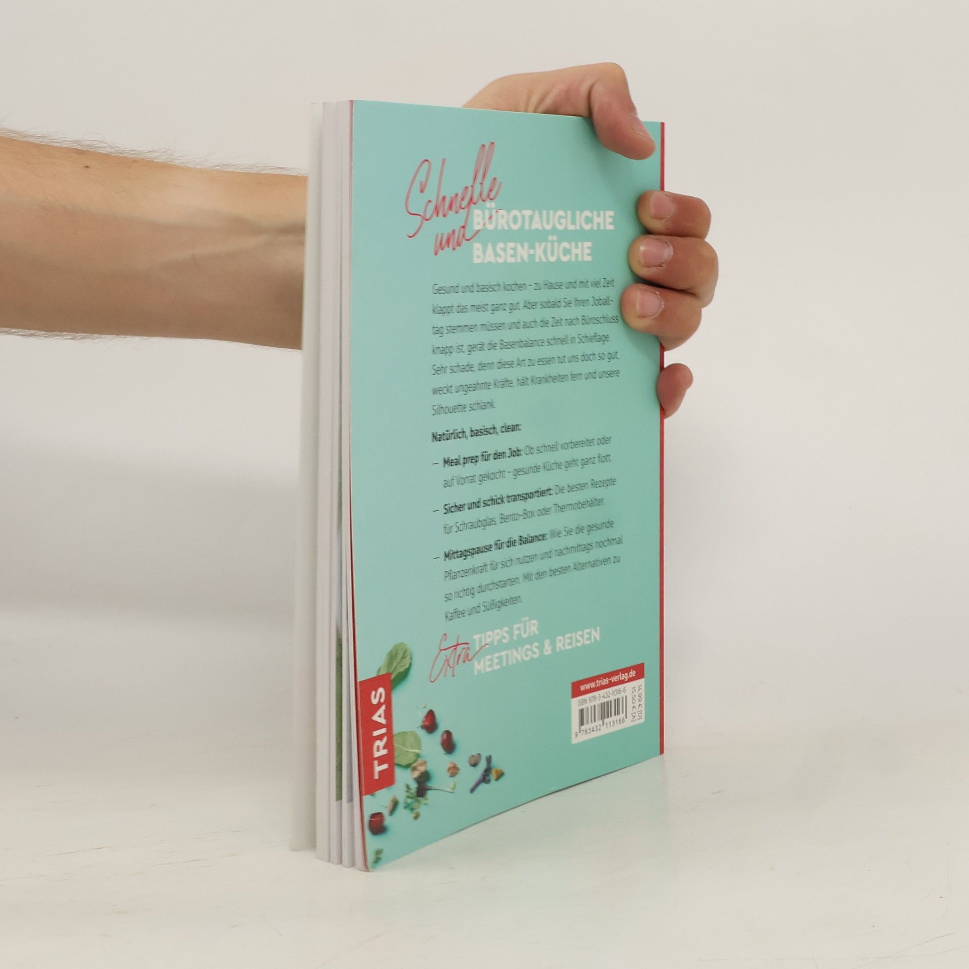 Schnelle und bürotaugliche Basen-Küche Gesund und basisch kochen – zu Hause und mit viel Zeit klappt das meist ganz gut. Aber sobald Sie Ihren Joballtag stemmen müssen und auch die Zeit nach Büroschluss knapp ist, gerät die Basenbalance schnell in Schieflage. Sehr schade, denn diese Art zu essen tut uns doch so gut, weckt ungeahnte Kräfte, hält Krankheiten fern und unsere Silhouette schlank. Natürlich, basisch, clean: - Meal prep für den Job: Ob schnell vorbereitet oder auf Vorrat gekocht – gesunde Küche geht ganz flott. - Sicher und schick transportiert: Die besten Rezepte für Schraubglas, Bento-Box oder Thermobehälter. - Mittagspause für die Balance: Wie Sie die gesunde Pflanzenkraft für sich nutzen und nachmittags nochmal so richtig durchstarten. Mit den besten Alternativen zu Kaffee und Süßigkeiten. Extra: Tipps für Meetings & Reisen