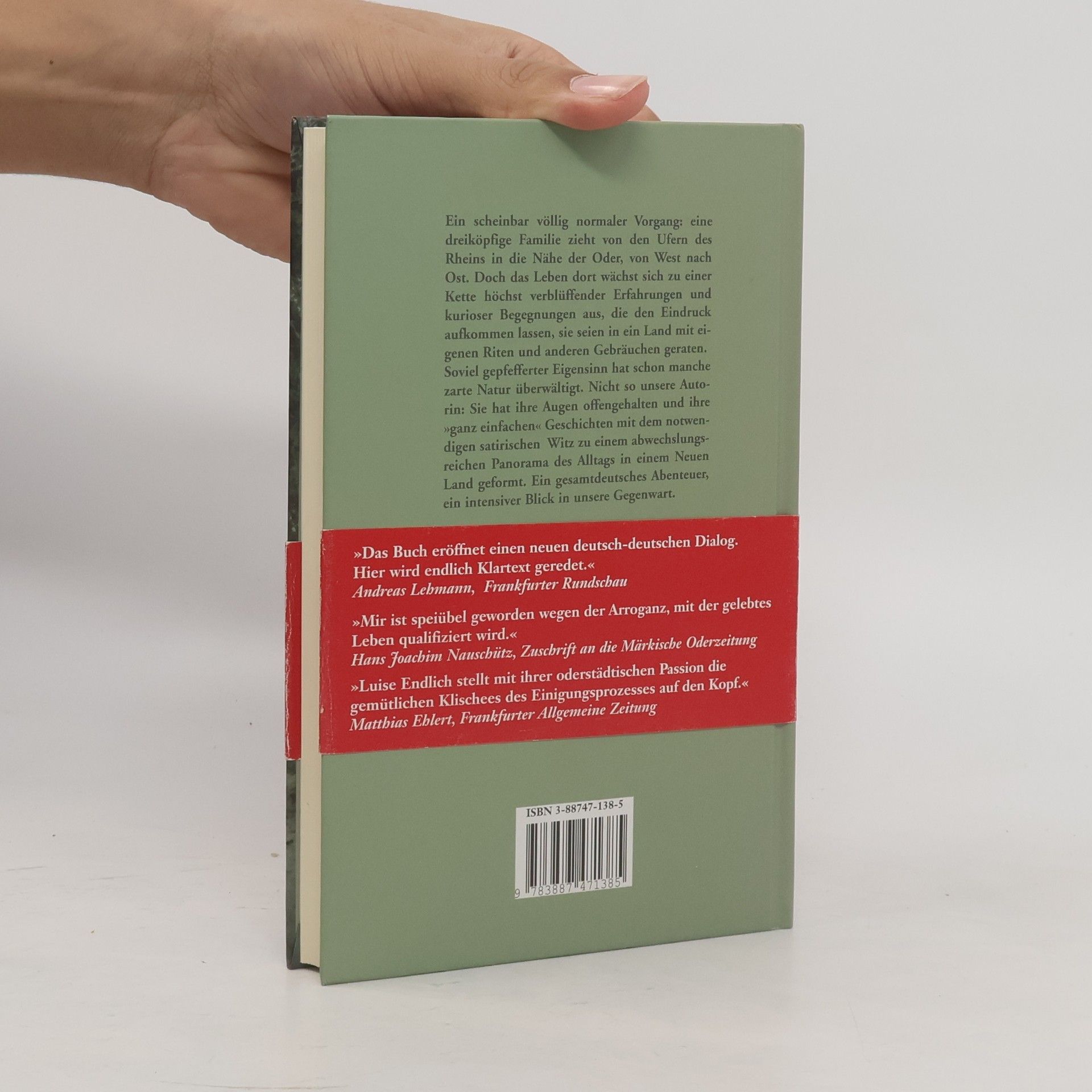 Ein scheinbar völlig normaler Vorgang: eine dreiköpfige Familie zieht von den Ufern des Rheins in die Nähe der Oder, von West nach Ost. Doch das Leben dort wächst sich zu einer Kette höchst verblüffender Erfahrungen und kurioser Begegnungen aus, die den Eindruck aufkommen lassen, sie seien in ein Land mit eigenen Riten und anderen Gebräuchen geraten.