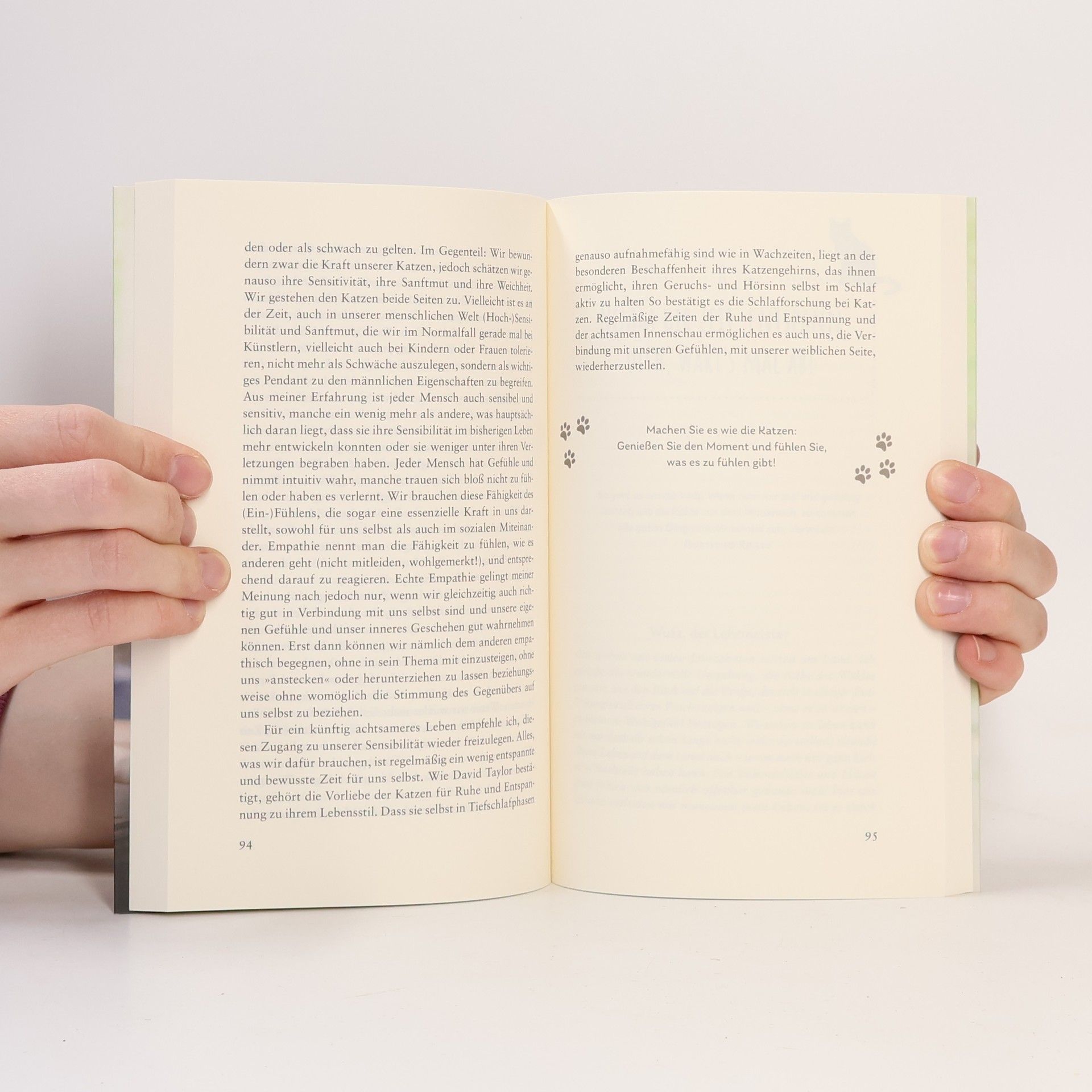 Lebenskunst auf Katzenart: zufrieden, selbstbewusst und unangepasst. Glück, Lebensfreude und Entspanntheit sind Eigenschaften, die wir von Katzen lernen können. Angelika Kail, Coach und Trainerin mit Fokus auf Burn-out-Prävention, teilt ihre Bewunderung für die ungezähmte Natur von Katzen. In ihrem Lebensratgeber präsentiert sie zehn typische Verhaltensweisen dieser Tiere als Vorbilder für eine authentische Lebenseinstellung ohne Kompromisse. Katzen lehren uns, dass Mut zum Eigensinn und das Achten auf sich selbst keine Rechtfertigung benötigen. Sie zeigen uns die Kunst, Prioritäten richtig zu setzen und ein erfülltes, stressfreies Leben zu führen. Indem wir uns in den Mittelpunkt unseres Lebens stellen, können wir das Glück finden, das Katzen bereits genießen. Sie leben kompromisslos und dennoch entspannt, wissen aber auch, wann es Zeit ist, die Krallen auszufahren, um ihr Glück zu sichern. Dieses Buch plädiert für mehr Individualität und Achtsamkeit gegenüber den eigenen Bedürfnissen, ohne in Egoismus zu verfallen. Es zeigt, wie wir ebenso glücklich wie unsere Stubentiger werden können, auch wenn wir nicht schnurren. Persönliches Wohlbefinden und innere Zufriedenheit entstehen durch die Akzeptanz von Dualitäten: Machen Sie es wie Ihre Katze und feiern Sie Ihre Einzigartigkeit!