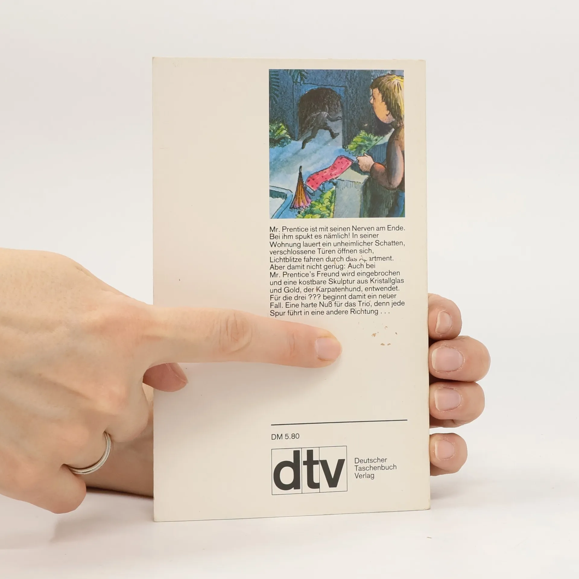 Ein Kunstsammler hat die 3 Detektive diesmal engagiert. Ihm ist eine wertvolle Glasplastik gestohlen worden, die ihm später von dem unbekannten Dieb wieder zum Kauf angeboten wird. In dem Haus geschehen dazu die seltsamsten Unfälle, sodass schliesslich nur noch wenige Bewohner heil und gesund sind ...