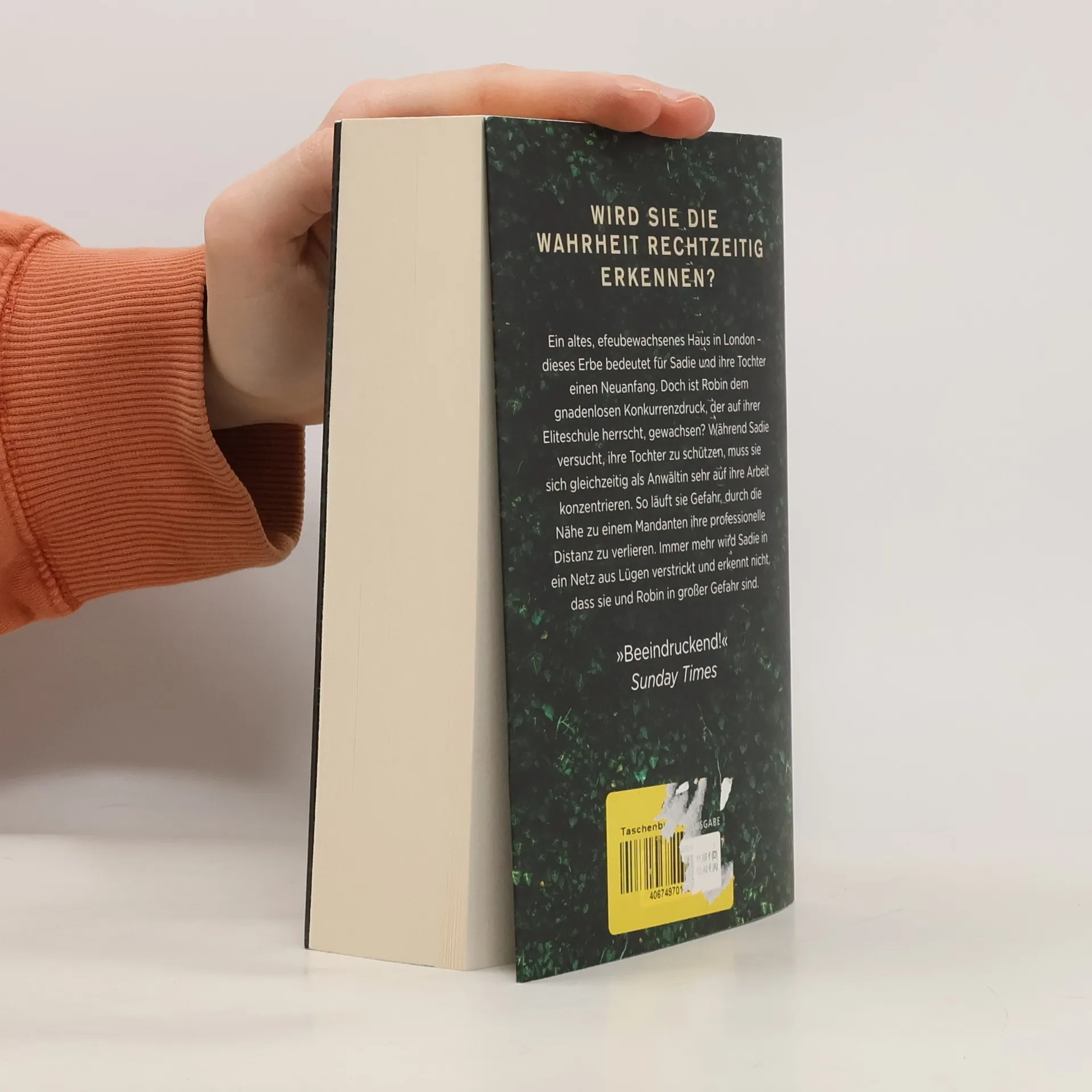 Sadie ist kürzlich in das alte, efeubewachsene Haus ihrer verstorbenen Mutter in London gezogen. Ihre Tochter soll in der Stadt eine exklusive Schule besuchen. Diese Eliteeinrichtung ist extrem begehrt, unter den Schülern – und deren Eltern – herrscht Konkurrenz. Während Sadie versucht, ihrer Tochter die Eingewöhnung möglichst leicht zu machen, will sie gleichzeitig ihre Stelle als Anwältin in ihrer alten Kanzlei zurückbekommen. Tatsächlich hat sie die Möglichkeit, den Angeklagten in einem skandalösen, lügendurchzogenen Fall zu vertreten. Sie setzt sich für ihren Mandanten ein – fast schon zu sehr – und läuft Gefahr, ihre professionelle Distanz zu verlieren. Und auch in ihrem Privatleben durchschaut Sadie kaum noch, was Lüge und was Wahrheit ist. Doch diese Erkenntnis kommt zu spät …