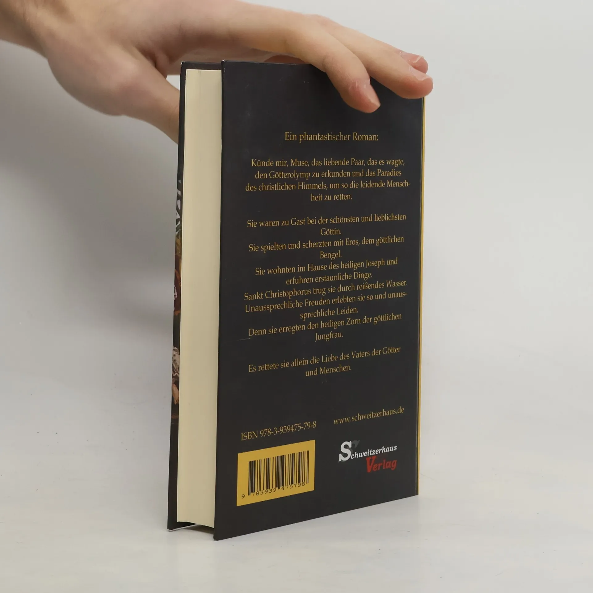 Künde mir, Muse, das liebende Paar, das es wagte, den Götterolymp zu erkunden und das Paradies des christlichen Himmels, um so die leidende Mensch-heit zu retten. Sie waren zu Gast bei der schönsten und lieblichsten Göttin. Sie spielten und scherzten mit Eros, dem göttlichen Bengel. Sie wohnten im Hause des heiligen Joseph und erfuhren erstaunliche Dinge. Sankt Christophorus trug sie durch reißendes Wasser. Unaussprechliche Freuden erlebten sie so und unaus-sprechliche Leiden. Denn sie erregten den heiligen Zorn der göttlichen Jungfrau. Es rettete sie allein die Liebe des Vaters der Götter und Menschen.