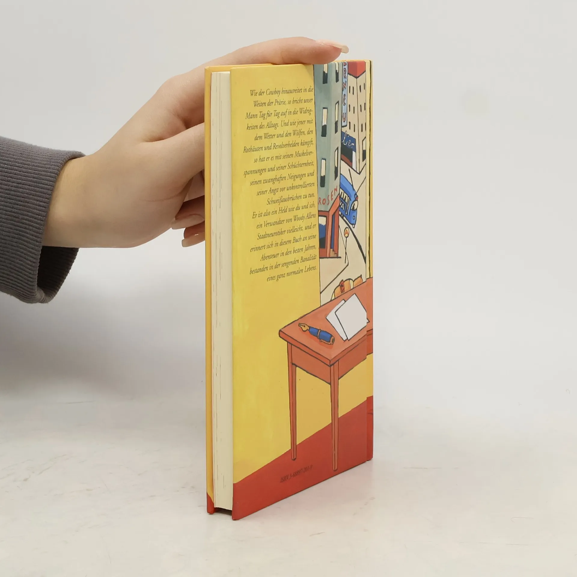 Wie der Cowboy hinausreitet in die Weiten der Prärie, so bricht unser Mann Tag für Tag auf in die Widrigkeiten des Alltags. Und wie jener mit dem Wetter und den Wölfen, den Rothäuten und Revolverhelden kämpft, so hat er es mit seinen Muskelverspannungen und seiner Schüchternheit, seinen zwanghaften Neigungen und seiner Angst vor unkontrollierten Schweißausbrüchen zu tun. Er ist also ein Held wie du und ich, ein Verwandter von Woody Allens Stadtneurotiker vielleicht, und er erinnert sich in diesem Buch an seine Abenteuer in den besten Jahren, bestanden in der sengenden Banalität eines ganz normalen Lebens.