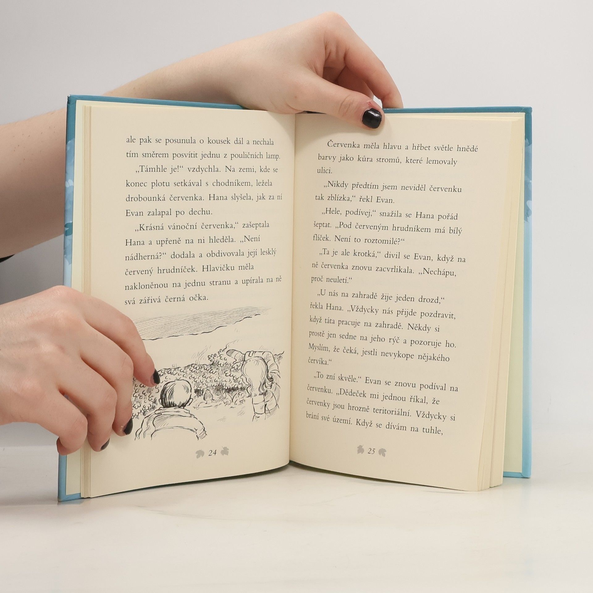 Příběh se šťastným koncem, který se skutečně stal! Evan s Hanou najdou ve sněhu promrzlou červenku. Chytila se do pasti a nemůže se hýbat. Hned zavolají na pomoc zvířecí záchranáře. Podaří se jim ptáčka vyprostit včas? Stále totiž velmi hustě chumelí a sněhu přibývá… Krásný příběh o lidech s dobrým srdcem, kteří pomáhají zachraňovat zvířátka.