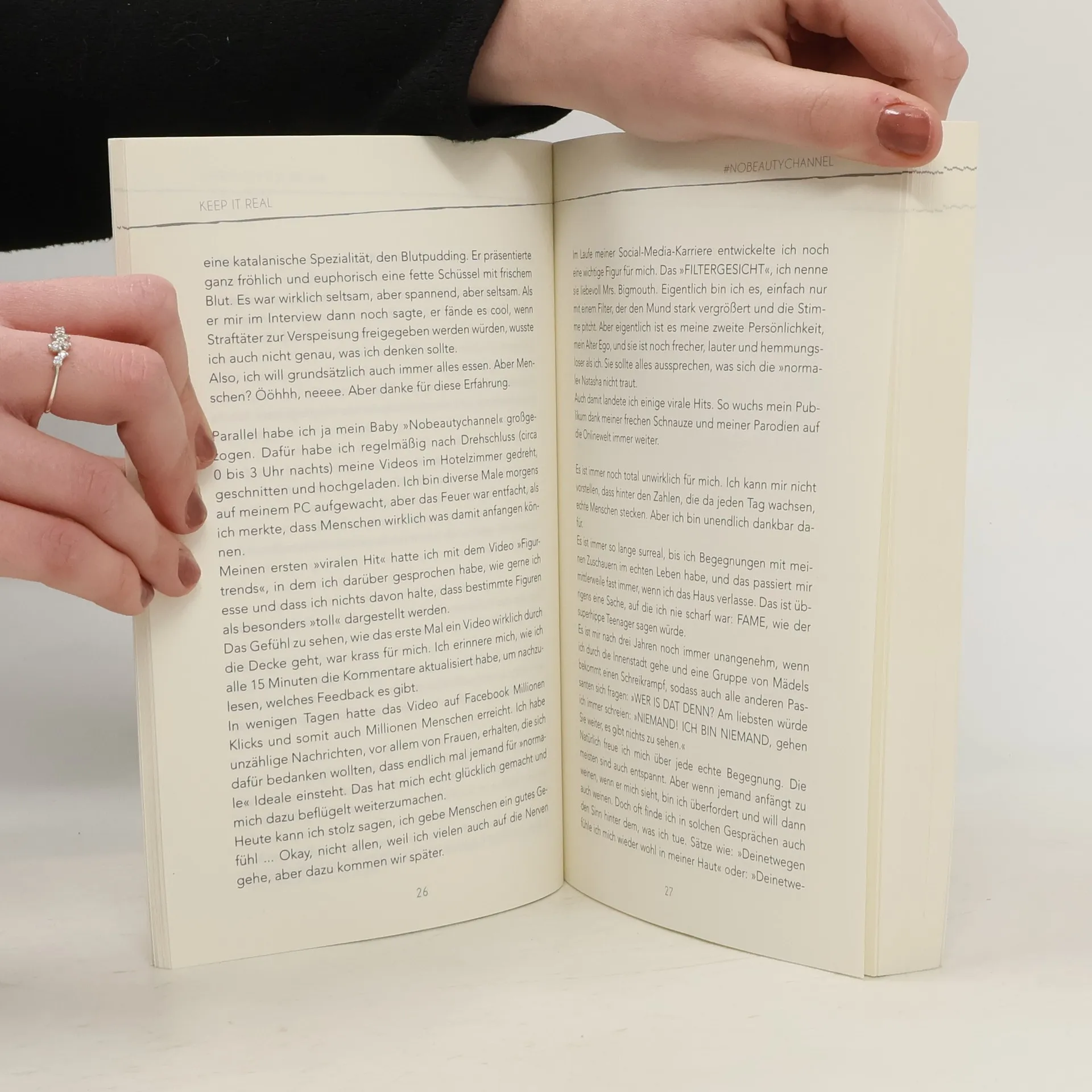 Natasha Kimberlys Videos in ihrem #nobeautychannel bei YouTube haben mehr als 1 Million Klicks, bei Instagram folgen ihr 400 000 Menschen – sie ist also eine Influencerin. Und doch ist sie anders. Im Gegensatz zu ihren stets topgestylten Kolleginnen dreht sich bei ihr nicht alles um Haare, Make-up und Klamotten, sondern um den Mut, man selbst zu sein. Mit diesem Buch setzt sie ein Statement gegen Fakes und dafür, sich nicht zu verstellen, um künstlichen Idealen gerecht zu werden. Erfrischend positiv gibt sie dabei nicht nur jede Menge freche Tipps, sondern auch zahlreiche Einblicke in ihr eigenes Leben. Ein Buch für alle jungen Menschen, die nicht perfekt, sondern authentisch sein wollen.
