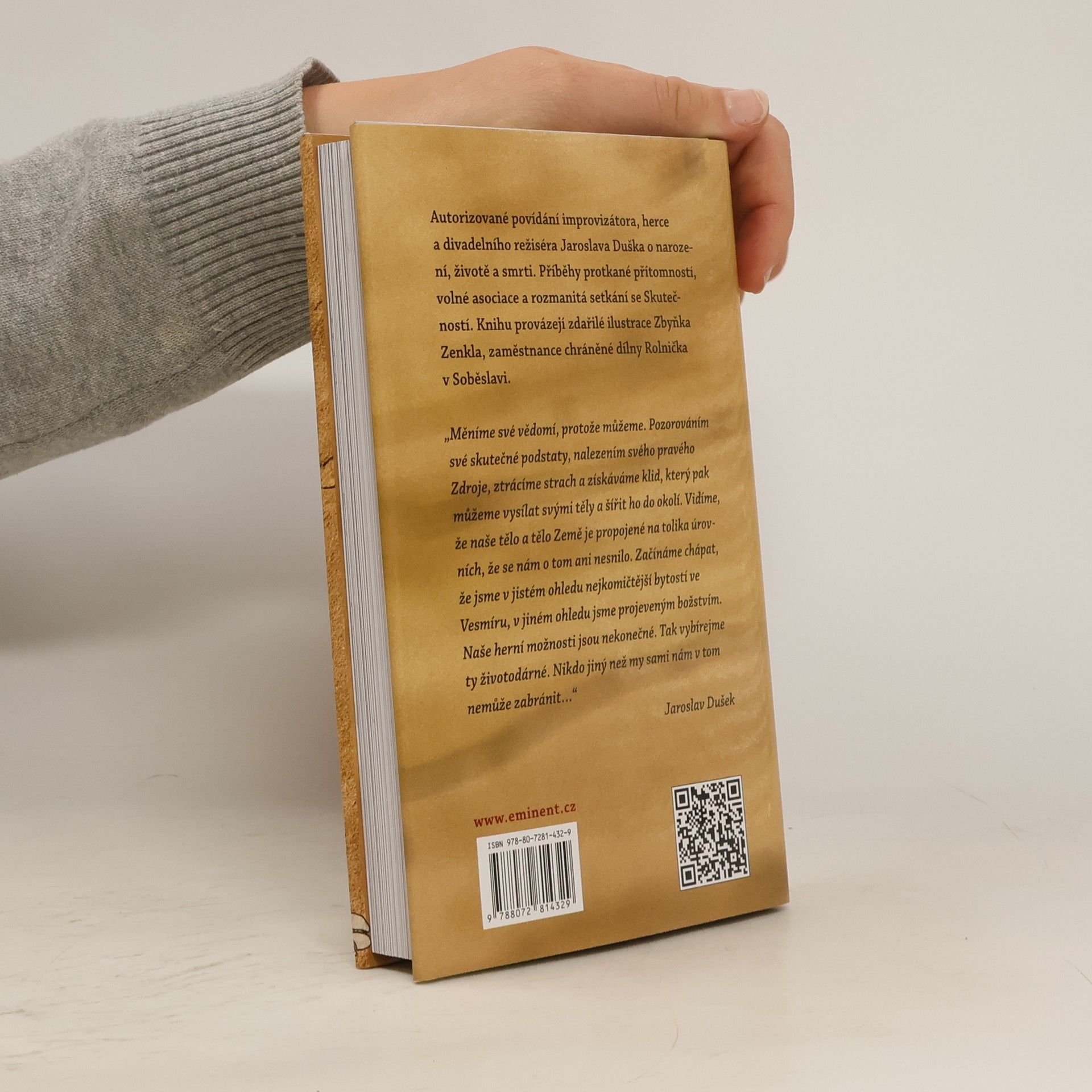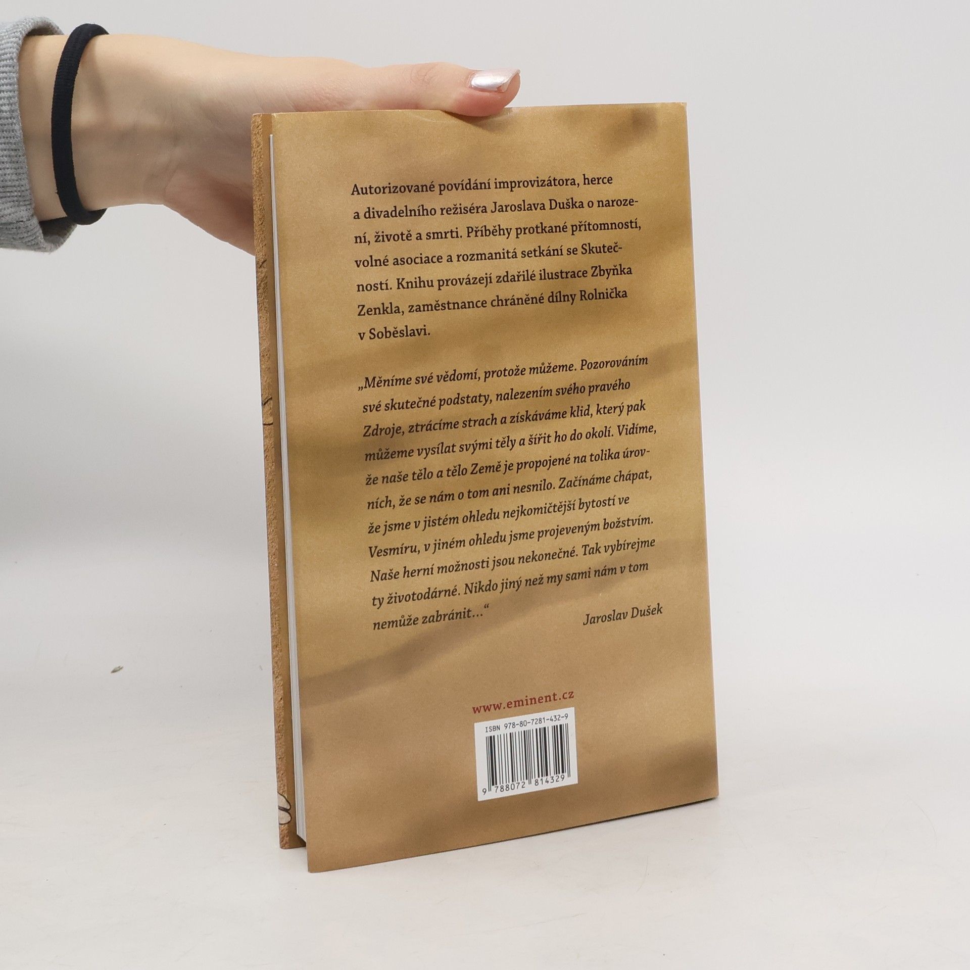 Autorizované povídání známého herce Jaroslava Duška o narození, životě a smrti. Příběhy protkané přítomností, volné asociace a rozmanitá setkání se Skutečností. Knihu provázejí zdařilé ilustrace Zbyňka Zenkla, zaměstnance chráněné dílny Rolnička v Soběslavi.