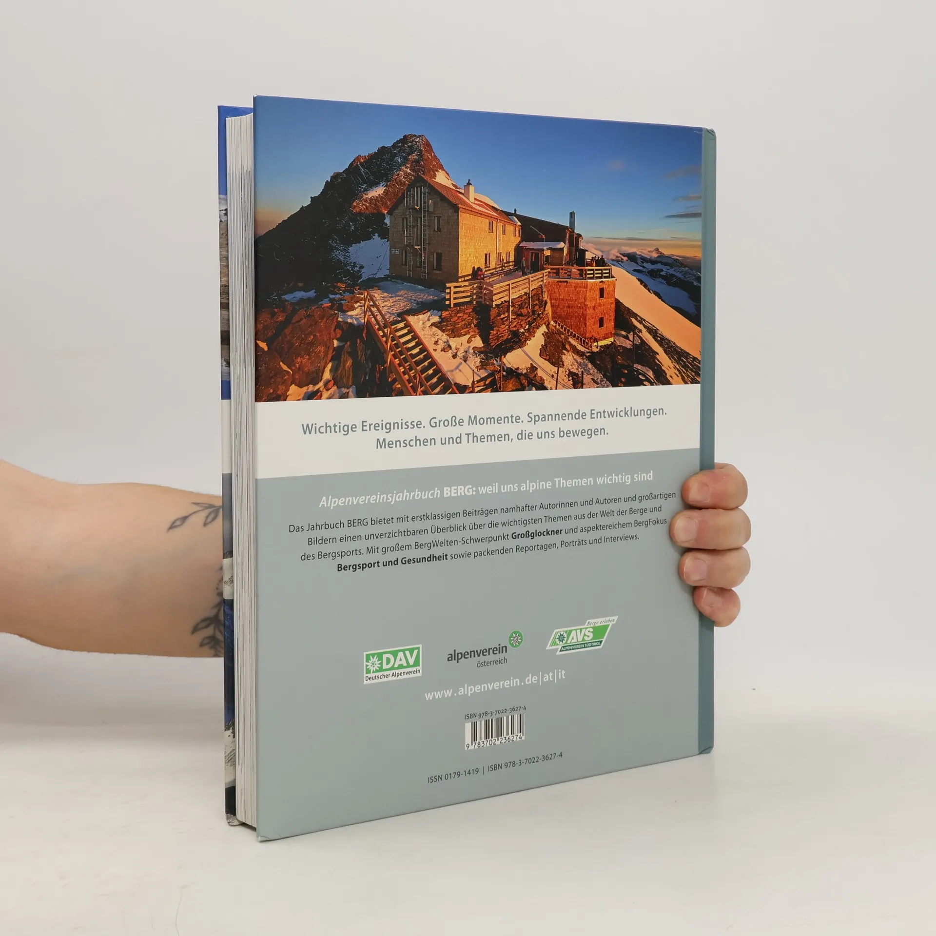 Der Bergbuch-Klassiker, heuer mit besonders attraktiven Schwerpunktthemen Das Jahrbuch BERG bildet mit seiner überzeugenden Themenvielfalt, der herausragenden inhaltlichen und optischen Qualität sowie dem ausgezeichneten Preis-Leistungs-Verhältnis seit Jahren ein Must-have im Bergbuchbereich. Erstklassige Beiträge namhafter Autoren und Fotografen bringen einen einzigartigen Überblick über die wichtigsten Themen und Trends aus der Welt der Berge und des Bergsports. Der BergWelten-Schwerpunkt gilt diesmal dem Großglockner, die Rubrik BergFokus widmet sich dem Thema Bergsport und Gesundheit. Tipps: Über 20.000 verkaufte Exemplare jährlich Attraktive Schwerpunktthemen, ausgezeichnetes Preis-Leistungs-Verhältnis, große Zielgruppe! Herausragende inhaltliche und optische Qualität, überzeugende Themenvielfalt Einheitspreis für Alpenvereinsmitglieder und Nicht-Mitglieder im Buchhandel