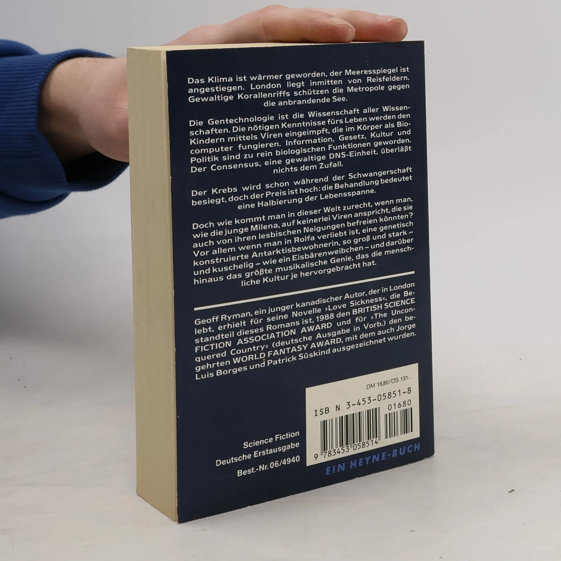Das Klima ist wärmer geworden, der Meeresspiegel ist angestiegen. London liegt inmitten von Reisfeldern. Gewaltige Korallenriffs schützen die Metropole gegen die anbrandende See. Die Gentechnologie ist die Wissenschaft aller Wissenschaften. Die nötigen Kenntnisse fürs Leben werden den Kindern mittels Viren eingeimpft, die im Körper als Biocomputer fungieren. Information, Gesetz, Kultur und Politik sind zu rein biologischen Funktionen geworden. Der Consensus, eine gewaltige DNS-Einheit, überläßt nichts dem Zufall. Der Krebs wird schon währen der Schwangerschaft besiegt, doch der Preis ist hoch: die Behandlung bedeutet eine Halbierung der Lebensspanne. Doch wie kommt man in dieser Welt zurecht, wenn man, wie die junge Milena, auf keinerlei Viren anspricht, die sie auch von ihren lesbischen Neigungen befreien könnten? Vor allem wenn man in Rolfa verliebt ist, eine genetisch konstruierte Antarktisbewohnerin, so groß und stark - und kuschelig - wie ein Eisbärenweibchen - und darüber hinaus das größte musikalische Genie, das die menschliche Kultur je hervorgebracht hat.