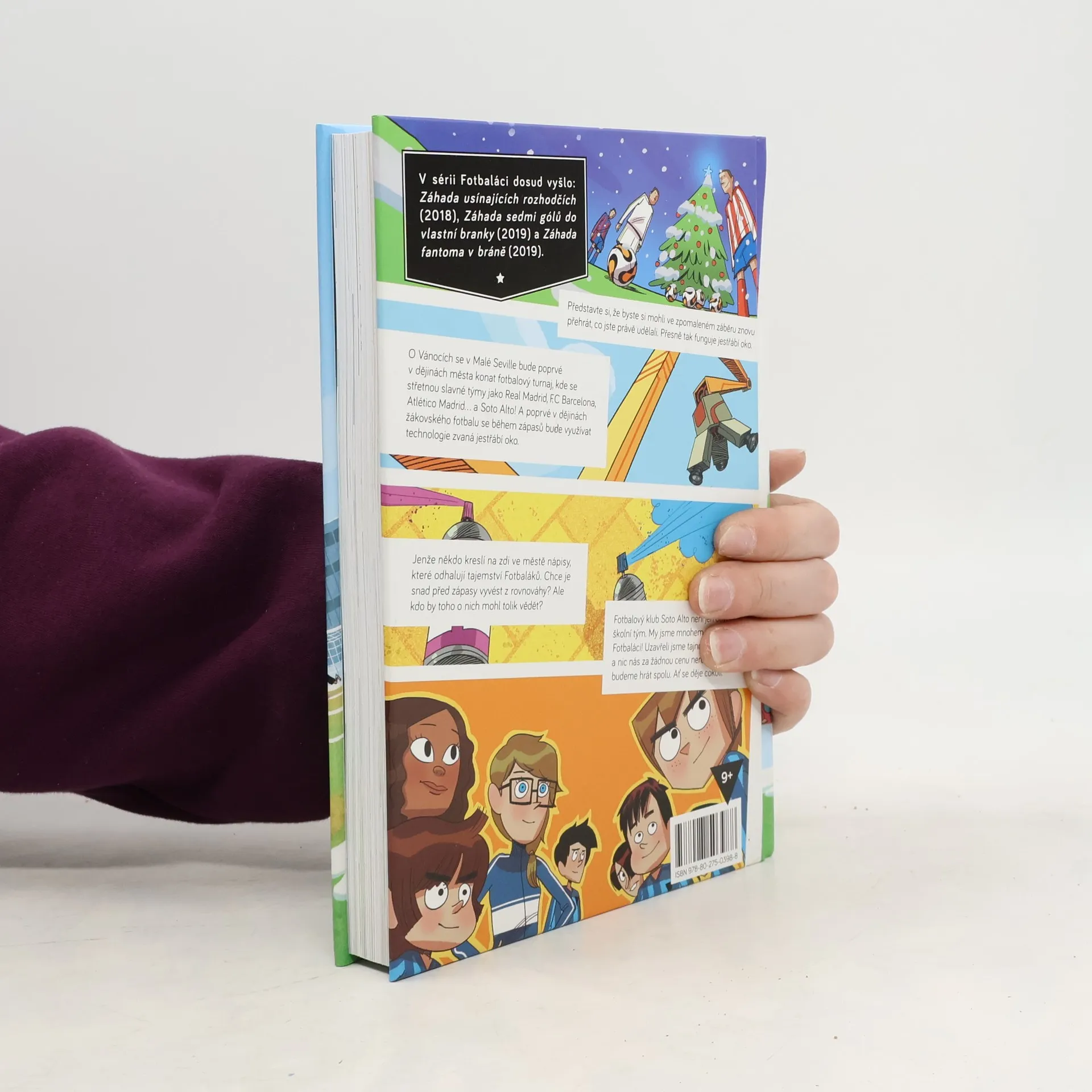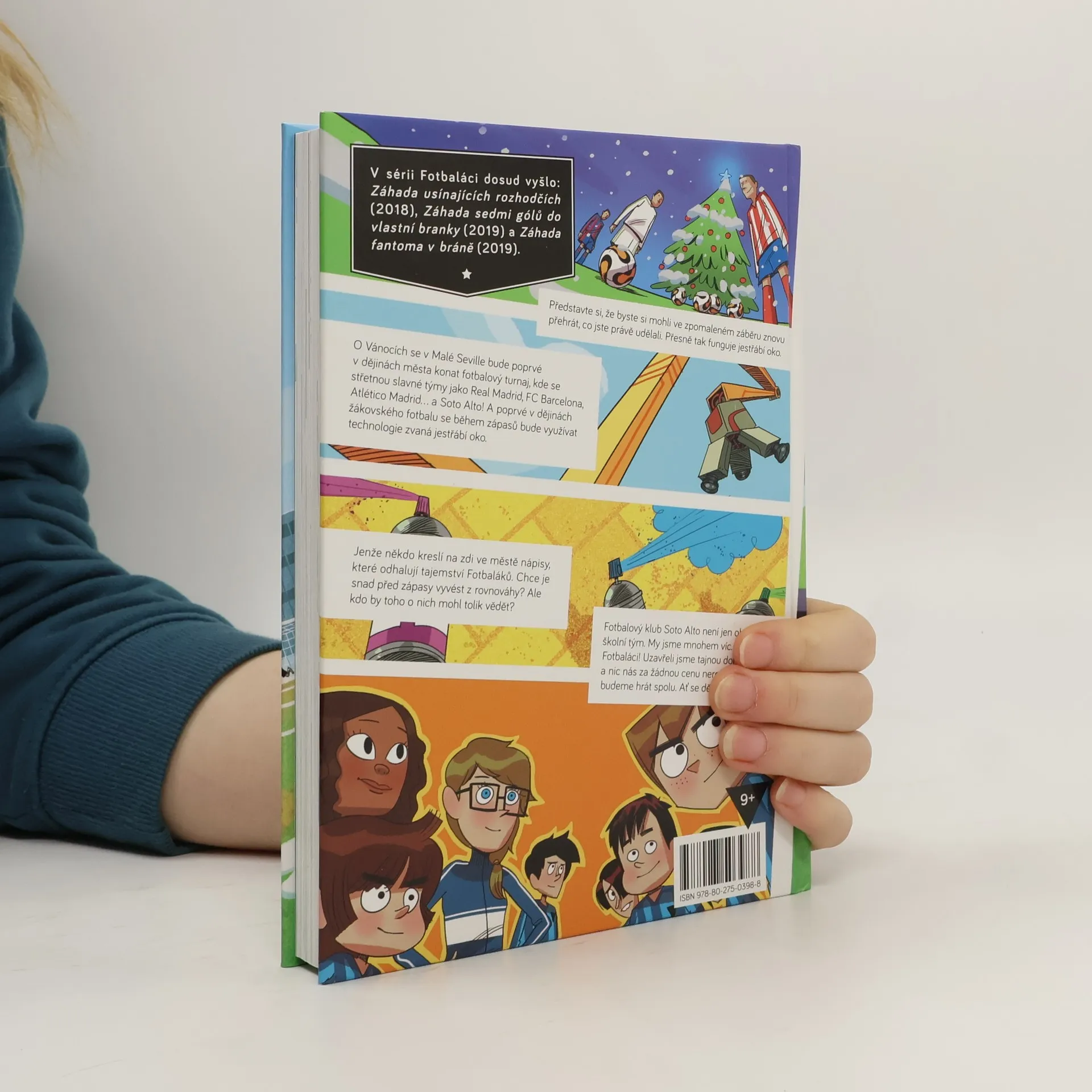 Představte si, že byste si mohli ve zpomaleném záběru znovu přehrát, co jste právě udělali. Přesně tak funguje jestřábí oko. O Vánocích se v Malé Seville bude poprvé v dějinách města konat fotbalový turnaj, kde se střetnou slavné týmy jako Real Madrid, FC Barcelona, Atlético Madrid… A Soto Alto! A poprvé v dějinách žákovského fotbalu se během zápasů bude využívat technologie zvaná jestřábí oko. Jenže někdo zaplňuje zdi ve městě graffiti, která odhalují soukromí Fotbaláků. Chce je snad vyvést z rovnováhy? Ale kdo by toho o nich mohl tolik vědět? Fotbaláci jsou vtipná, poutavě napsaná ilustrovaná série, která vypráví o odhodlání, přátelství a spolupráci. Rozhodně bude bavit i ty, kdo fotbal nehrají, ale pokud fotbal miluješ, je to knížka pro tebe!
