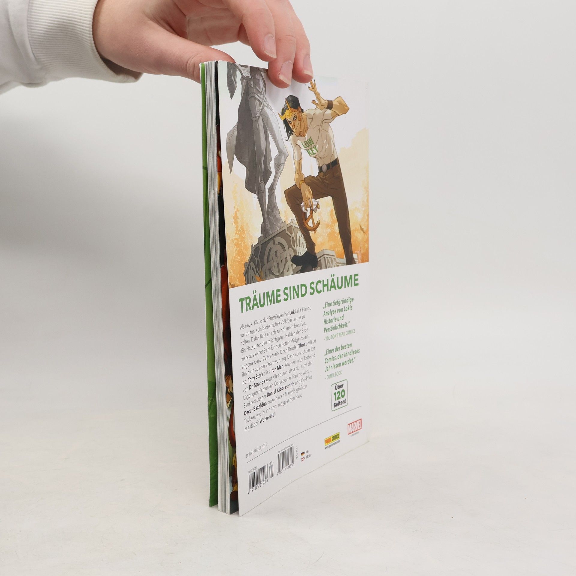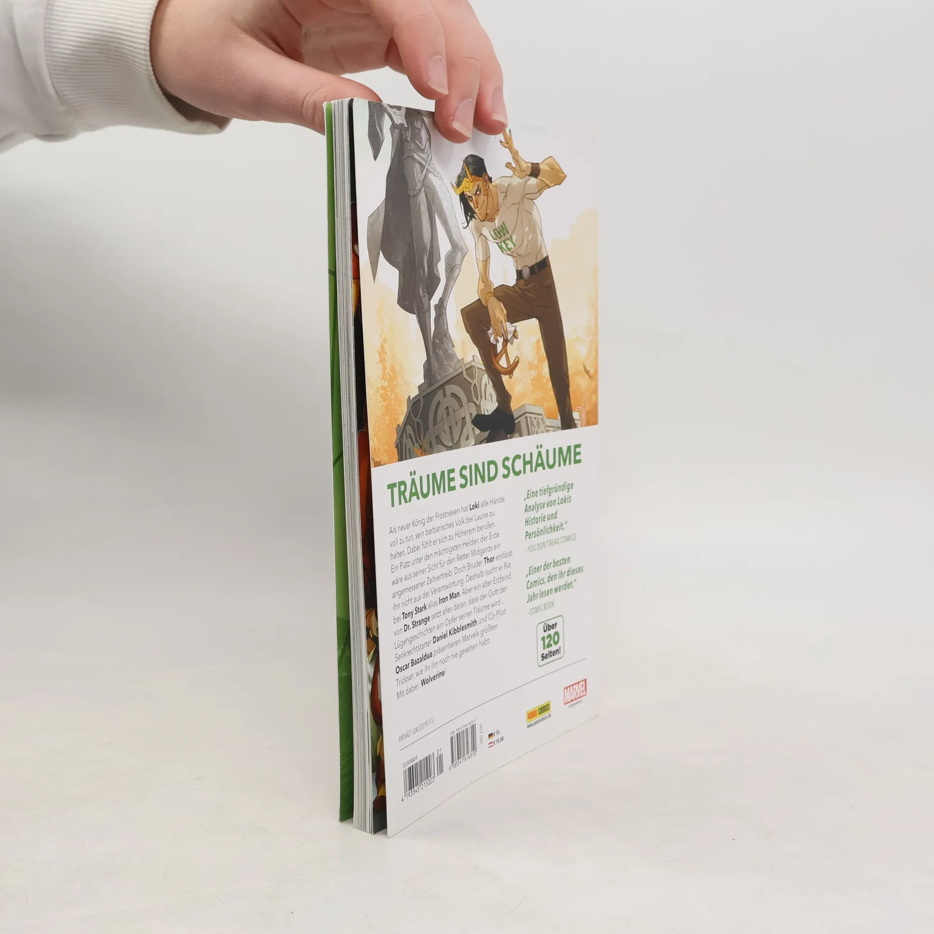 TRÄUME SIND SCHÄUME Als neuer König der Frostriesen hat Loki alle Hände voll zu tun, sein barbarisches Volk bei Laune zu halten. Dabei fühlt er sich zu Höherem berufen. Ein Platz unter den mächtigsten Helden der Erde wäre aus seiner Sicht für den Retter Midgards ein angemessener Zeitvertreib. Doch Bruder Thor entlässt ihn nicht aus der Verantwortung. Deshalb sucht er Rat bei Tony Stark alias Iron Man. Aber ein alter Erzfeind von Dr. Strange setzt alles daran, dass der Gott der Lügengeschichten ein Opfer seiner Träume wird ... Senkrechtstarter Daniel Kibblesmith und Co-Pilot Oscar Bazaldua präsentieren Marvels größten Trickser, wie ihr ihn noch nie gesehen habt. Mit dabei: Wolverine! ENTHÄLT: LOKI (2019) 1-5