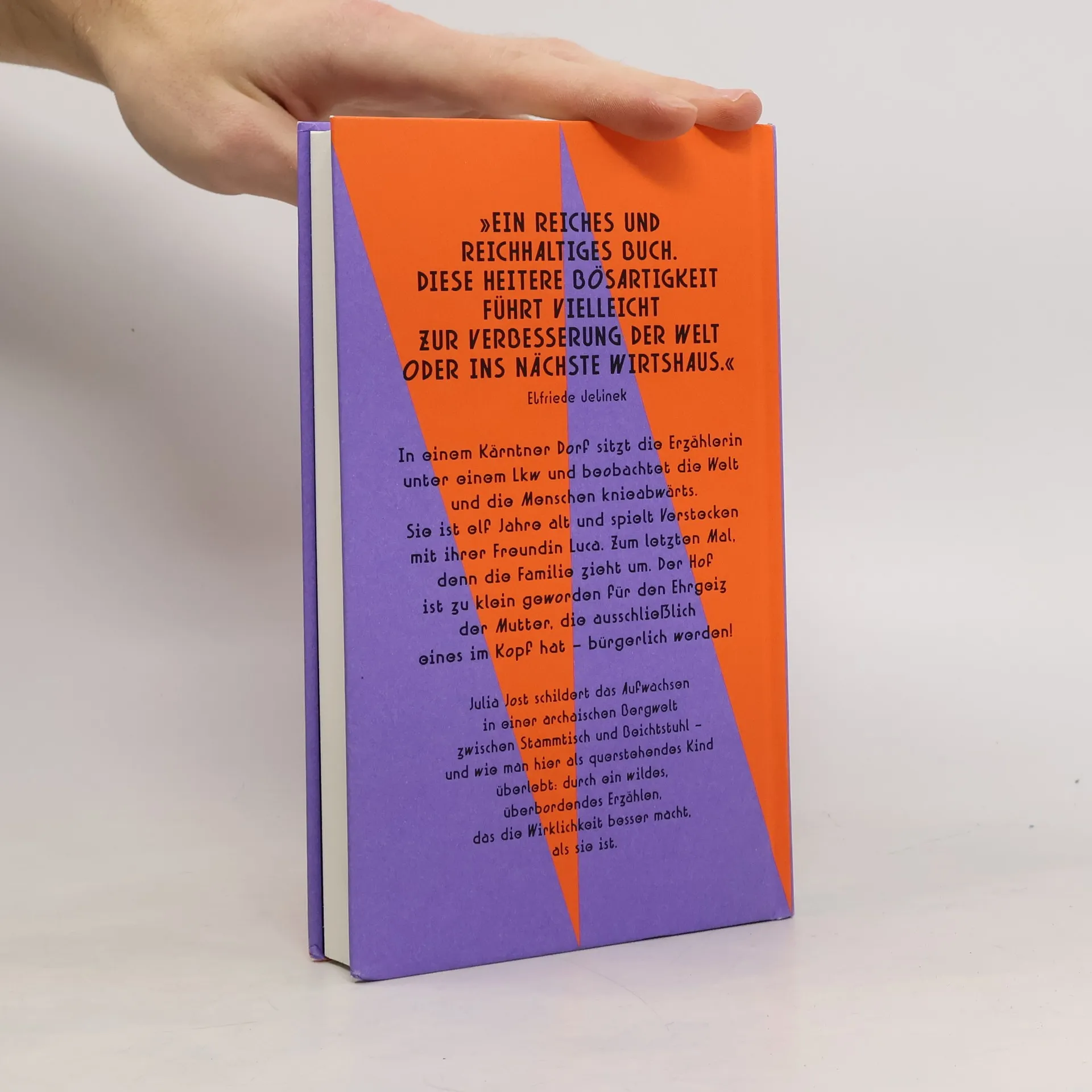 »Ein reiches und reichhaltiges Buch. Diese heitere Bösartigkeit führt vielleicht zur Verbesserung der Welt oder ins nächste Wirtshaus.« Elfriede Jelinek Es ist das Jahr 1994. In einem Kärntner Dorf am Fuß der Karawanken sitzt die Erzählerin unter einem Lkw und beobachtet die Welt und die Menschen knieabwärts. Sie ist elf Jahre alt und spielt Verstecken mit ihrer Freundin Luca aus Bosnien. Zum letzten Mal, denn die Familie zieht um. Der Hof ist zu klein geworden für den Ehrgeiz der Mutter, die ausschließlich eines im Kopf hat – bürgerlich werden! Nach und nach treffen immer mehr Nachbarsleute ein, um beim Umzug zu helfen, und das Kind in seinem Versteck beginnt zu erzählen: von seiner Angst, im Katzlteich ertränkt zu werden, weil es kurze Haare hat. Weil es Bubenjeans trägt. Weil es heimlich in Luca verliebt ist. Dabei ist sie nicht die Einzige, die etwas verbergen muss. Sie kennt Geschichten über die Ankommenden, die in tiefe Abgründe blicken lassen und doch auch Mitgefühl wecken. Julia Jost schildert in ihrem Debütroman das Aufwachsen in einer archaischen Bergwelt zwischen Stammtisch und Beichtstuhl – und wie man hier als querstehendes Kind überlebt und sich der vorgegebenen Ordnung widersetzt: dank einer zärtlichen Freundschaft und durch ein wildes, überbordendes Erzählen, das die Wirklichkeit besser macht, als sie ist.