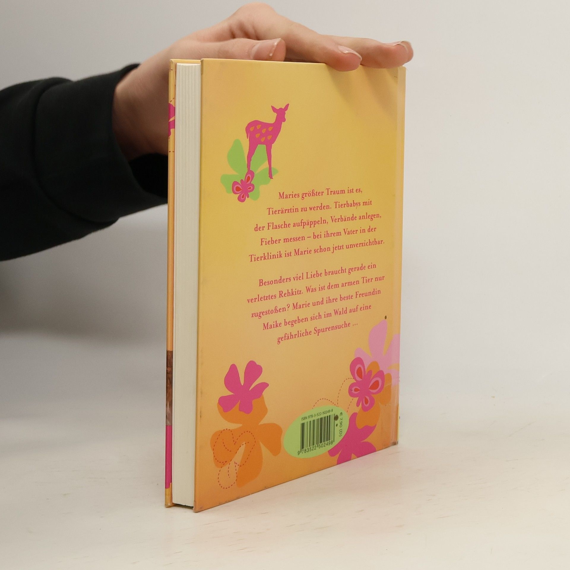 Maries größter Traum ist es, Tierärztin zu werden. Tierbabys mit der Flasche aufpäppeln, Verbände anlegen, Fieber messen – bei ihrem Vater in der Tierklinik ist Marie schon jetzt unverzichtbar. Und dank ihres Spürsinns retten sie und ihre beste Freundin Maike viele Tiere in Not. Besonders große Sorgen macht Marie sich um ein verletztes Rehkitz. Was ist ihm nur zugestoßen? Zusammen mit ihrer Freundin Maike und Hund Stracciatella beginnt Marie im Wald zu recherchieren und kommt einem Wilderer auf die Spur. „Unsere Tierklinik“ – Spannende Abenteuer für Tierfreunde ab 8 Jahren