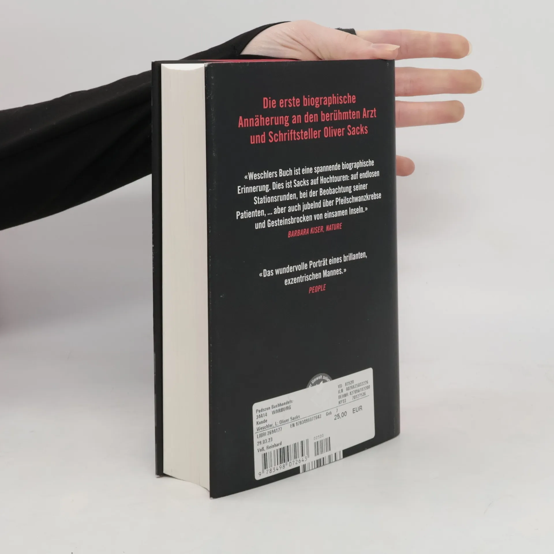 Er war ein großartiger Arzt und ein begnadeter Erzähler: Mit seinen Fallgeschichten hat Oliver Sacks Millionen Lesern ein neues, anderes Bild von Krankheit vermittelt. Voller Empathie und mit großer Fachkenntnis hat Sacks immer wieder Menschen beschrieben, deren Leben durch eine schwere Krankheit oder Behinderung geprägt wurde – und die unser Interesse und Mitgefühl verdienen. Schon 1981, als Sacks noch weitgehend unbekannt war, beschloss der Journalist Lawrence Weschler, die Biographie von Oliver Sacks zu schreiben. Er konnte ihn bei seiner täglichen Arbeit als Arzt erleben, begleitete ihn auf Reisen und führte zahlreiche intensive Gespräche mit ihm. Auf dieser Grundlage entstand eine sehr persönliche Nahaufnahme. Weschler erzählt ausführlich von der Entstehung der ersten Sacks-Bücher, die zu Bestsellern wurden, und verfolgt den Weg des Autors Oliver Sacks bis zu dessen Tod im Jahre 2015. Das einzigartige Porträt eines empathischen Menschenfreundes und Seelenforschers, der unser Bild von Krankheit und Gesundheit nachhaltig verändert hat.