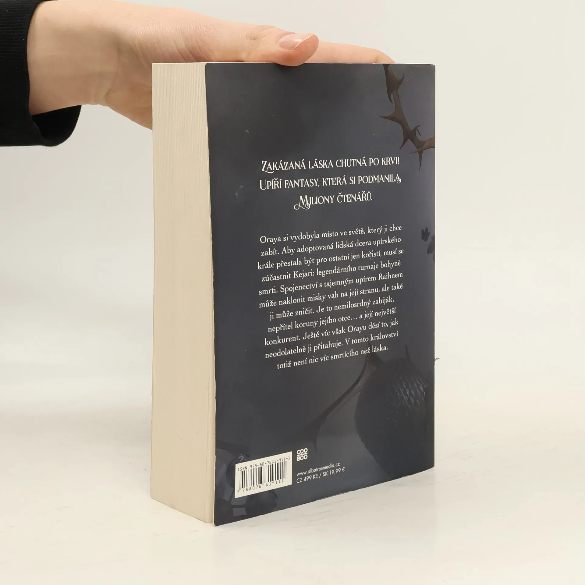 Oraya si vydobyla místo ve světě, který ji chce zabít. Aby adoptovaná lidská dcera upírského krále přestala být pro ostatní jen kořistí, musí se zúčastnit Kejari: legendárního turnaje bohyně smrti. Spojenectví s tajemným upírem Raihnem může naklonit misky vah na její stranu, ale také ji může zničit. Je to nemilosrdný zabiják, nepřítel koruny jejího otce... a její největší konkurent. Ještě víc však Orayu děsí to, jak neodolatelně ji přitahuje. V tomto království totiž není nic víc smrtícího než láska.