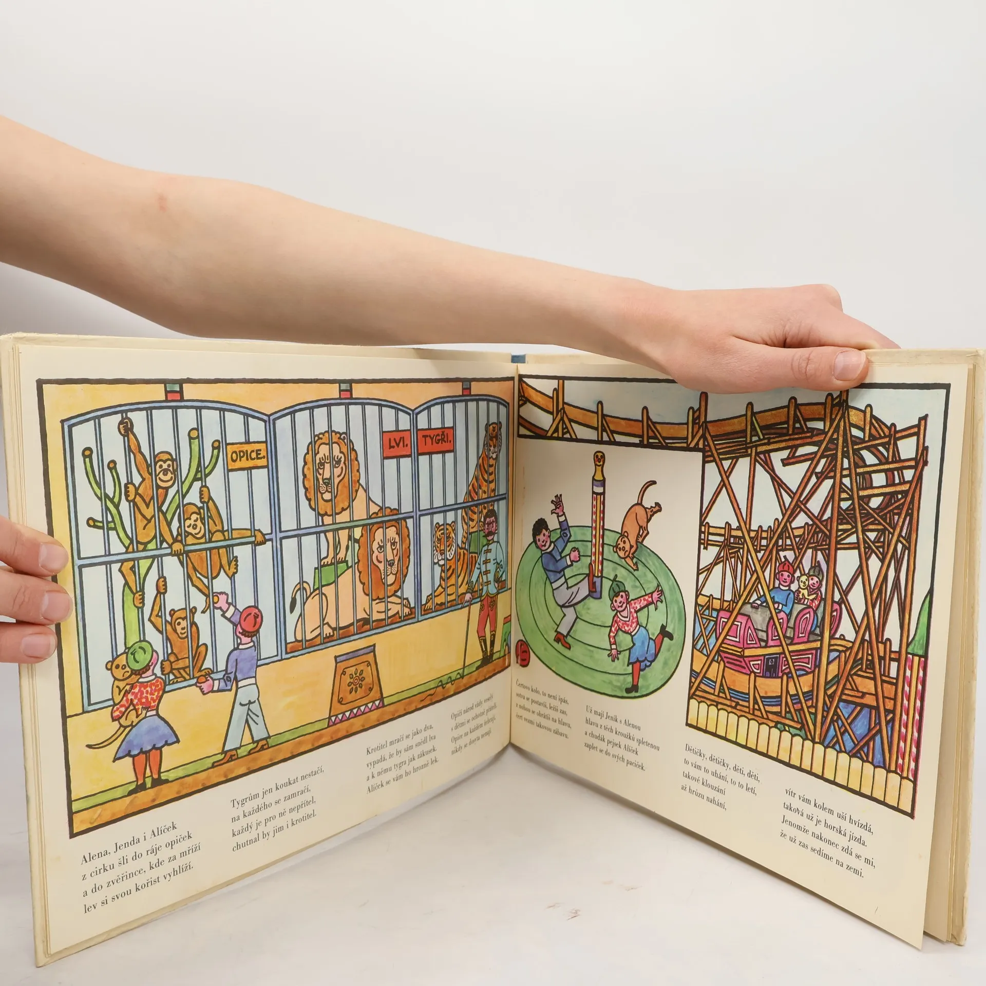 Rýmované vyprávění o tom, jak si Jenda, Alenka a pes Alík vyjeli do města na pouť a do cirkusu.