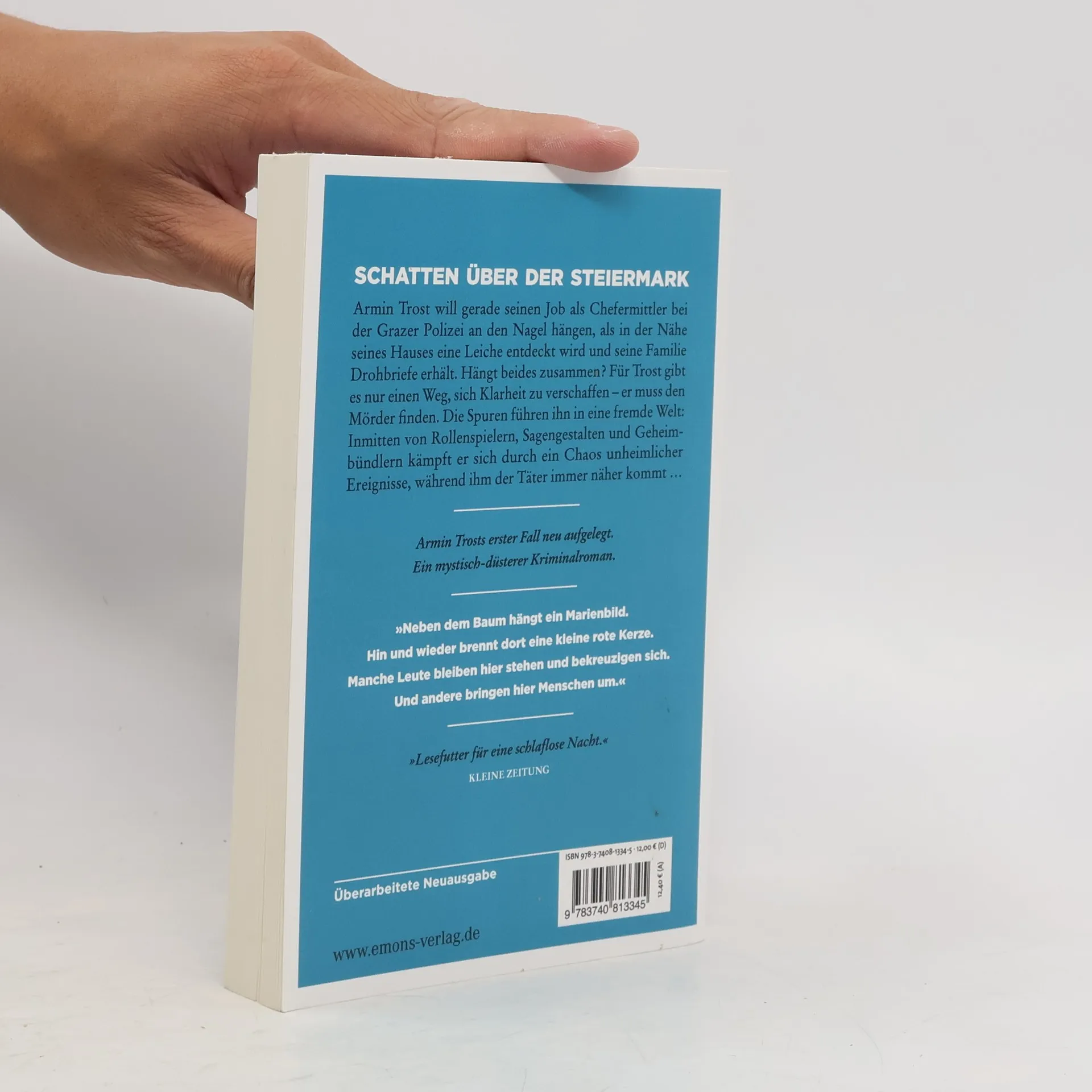 Ein Krimi zwischen Mythen, Sagen und Legenden. Und mit einem sehr realen Mörder. Armin Trost will gerade seinen Job als Chefermittler bei der Grazer Polizei an den Nagel hängen, als in der Nähe seines Hauses eine Leiche entdeckt wird und seine Familie Drohbriefe erhält. Hängt beides zusammen? Für Trost gibt es nur einen Weg, sich Klarheit zu verschaffen – er muss den Mörder finden. Die Spuren führen ihn in eine Welt, die er bisher nicht kannte: Umgeben von Rollenspielern, Sagengestalten und Geheimbünden kämpft er sich durch ein Chaos unheimlicher Ereignisse, während ihm der Täter immer näher kommt . . .