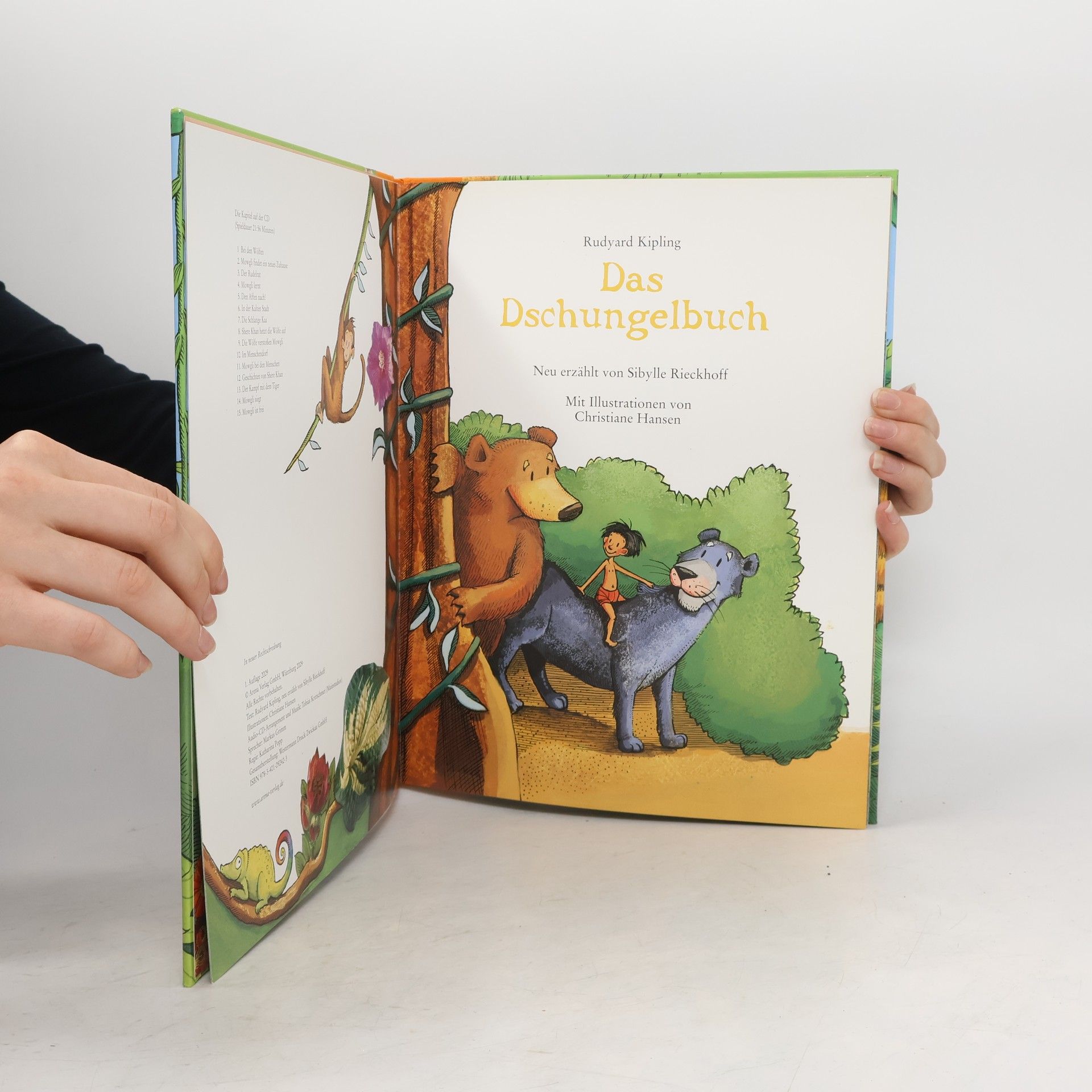 Aufwachsen mit den Schätzen der internationalen Kinderliteratur – das ermöglichen die Arena Bilderbuch-Klassiker! Sibylle Rieckhoff erzählt die spannendsten Dschungelerlebnisse des Jungen Mowgli schon für Kinder ab 4 Jahren nach: die Abenteuer mit dem Bären Baloo, dem Panter Bagheera, der Schlange Kaa oder dem gefährlichen Tiger Shere Khan. Und die farbenprächtigen Szenen von Christiane Hansen werden Groß und Klein immer wieder aufs Neue verzaubern.