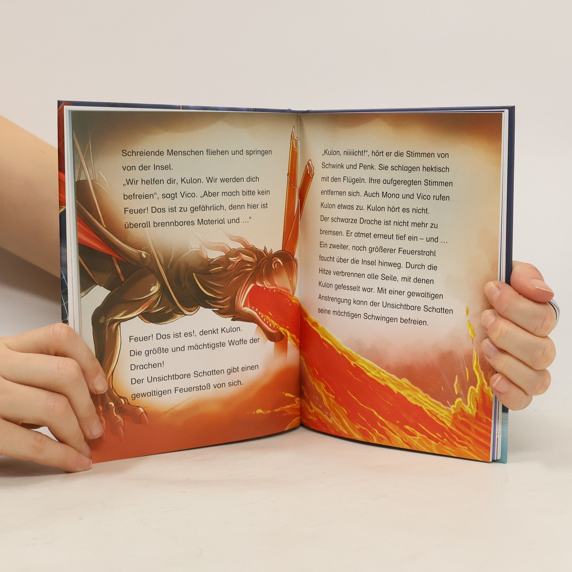 Ein fantastisches Leseabenteuer für Jungen und Mädchen, ideal für Wenigleser und Drachen-Fans! Vico und Mona sind überglücklich ihre Mutter gefunden zu haben. Aber wo ist ihr Vater? Auf der Suche nach ihm geraten sie in ein schweres Unwetter und in die Fänge von Piraten. Die Kinder und ihre Drachen beweisen Mut und landen schließlich auf einer geheimnisvollen Insel. Werden sie hier endlich ihren Vater finden? Kurze Kapitel mit leicht lesbarer Fibelschrift garantieren schnellen Leseerfolg. Coole und witzige Illustrationen auf jeder Seite entführen in Vicos Welt der Drachen. Weitere Bände der Reihe: - Das Geheimnis des funkelnden Amuletts - Angriff des schwarzen Drachen - Der Schatz im Feuerberg Der Titel ist auf Antolin. de gelistet.
