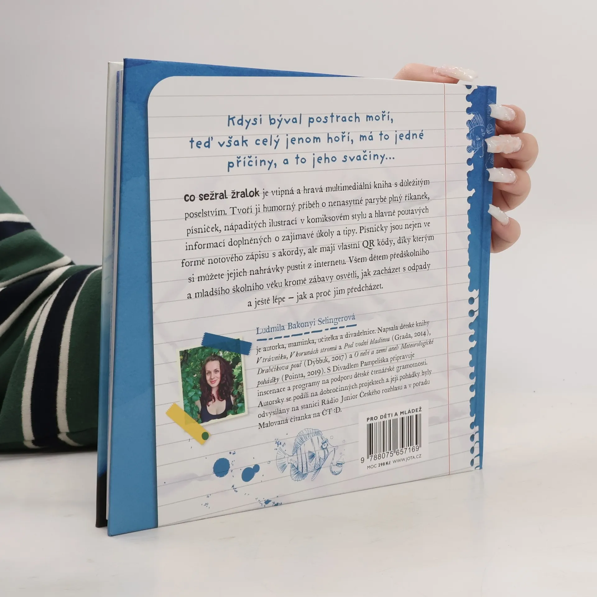 Co sežral žralok je vtipná a hravá multimediální kniha s důležitým poselstvím. Tvoří ji humorný příběh o nenasytné parybě plný říkanek, písniček, nápaditých ilustrací v komiksovém stylu a hlavně poutavých informací doplněných o zajímavé úkoly a tipy. Písničky jsou nejen ve formě notového zápisu s akordy, ale mají vlastní QR kódy, díky kterým si můžete jejich nahrávky pustit z internetu. Všem dětem předškolního a mladšího školního věku kromě zábavy osvětlí, jak zacházet s odpady a ještě lépe – jak a proč jim předcházet.
