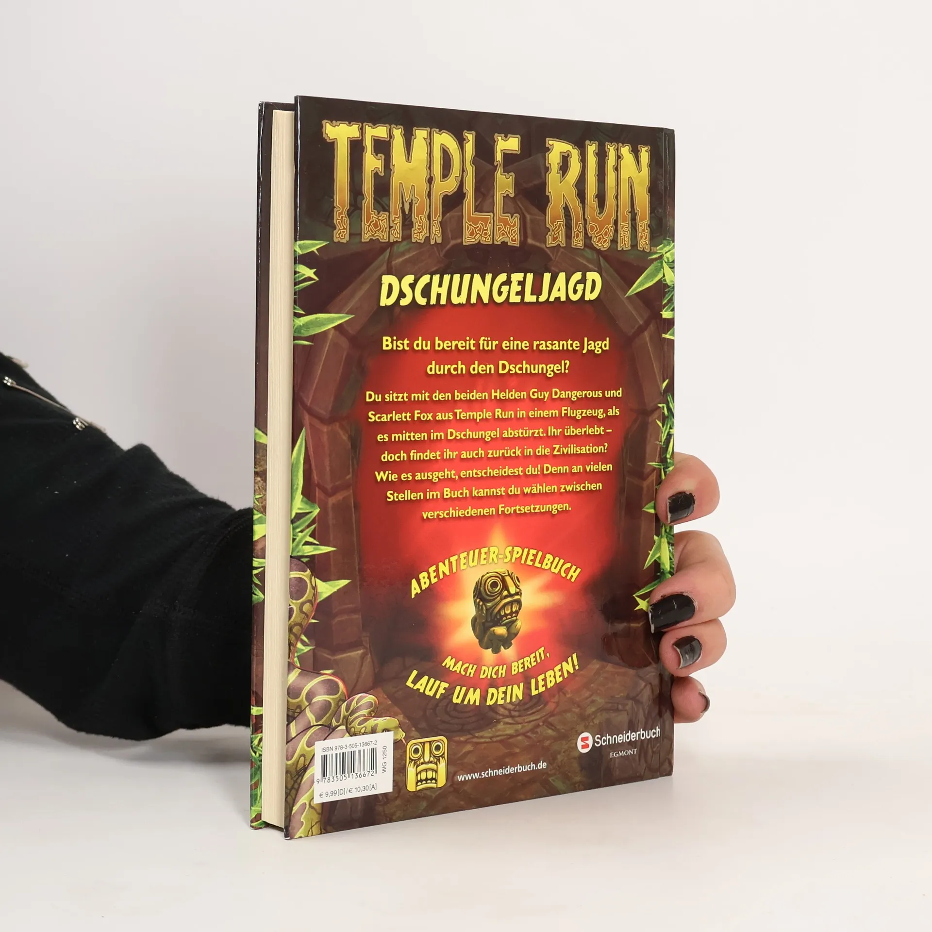 Bist du bereit für eine rasante Jagd durch den Dschungel? Du sitzt mit den beiden Helden Guy Dangerous und Scarlett Fox aus Temple Run in einem Flugzeug, als es mitten im Dschungel abstürzt. Ihr überlebt – doch findet ihr auch zurück in die Zivilisation? Wie es ausgeht, entscheidest du! Denn an vielen Stellen im Buch kannst du wählen zwischen verschiedenen Fortsetzungen. Schnell und energiegeladen wie das Game!