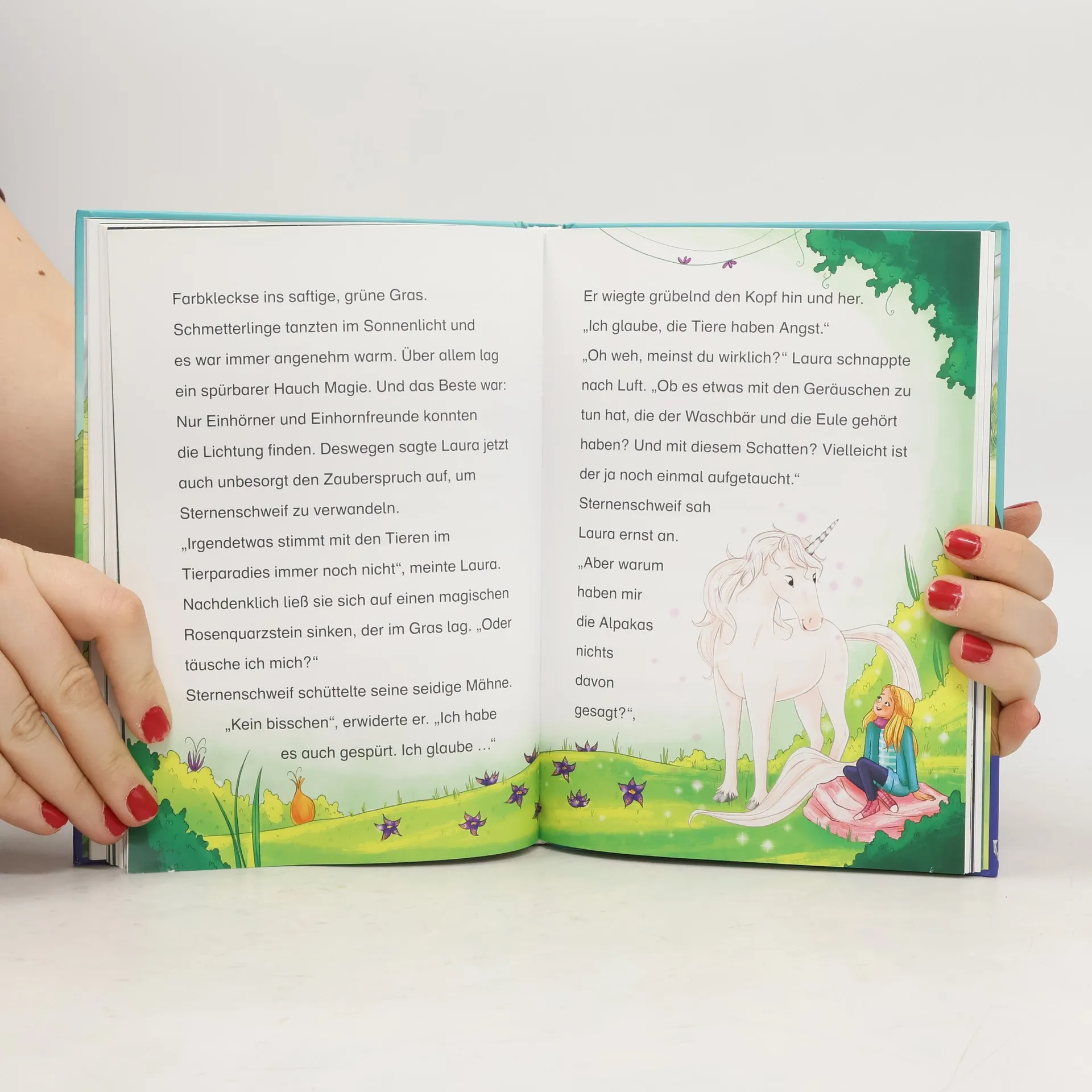 Einfach zu lesen– mit vielen farbigen Bildern – immer magisch! Zum Vorlesen und Selberlesen ab 7 Jahren. Beliebtes Thema Einhorn. Magische Geschichten, die die Fantasie anregen. Leicht lesbar durch Fibelschrift und einfache Sätze. Motiviert Leseanfänger. Stärkt die Lesekompetenz. Laura hat ein wunderbares Geheimnis: Ihr Pony Sternenschweif ist in Wirklichkeit ein Einhorn! Zusammen erleben die beiden Freunde viele magische Abenteuer. Laura macht ein Praktikum auf einer Tierfarm, wo gerettete Tiere ein neues Zuhause finden. Doch warum sind die Alpakas und die Streifenhörnchen so traurig? Und wer ist die geheimnisvolle Gestalt, die nachts über das Gelände schleicht? Laura und Sternenschweif stehen vor einem Rätsel: Hat der Unbekannte vielleicht etwas mit dem Pony zu tun, das Sternenschweif so ähnlich sieht? Die Erfolgsreihe Sternenschweif: die perfekte Kombination aus Pferdegeschichte und Einhornabenteuer.