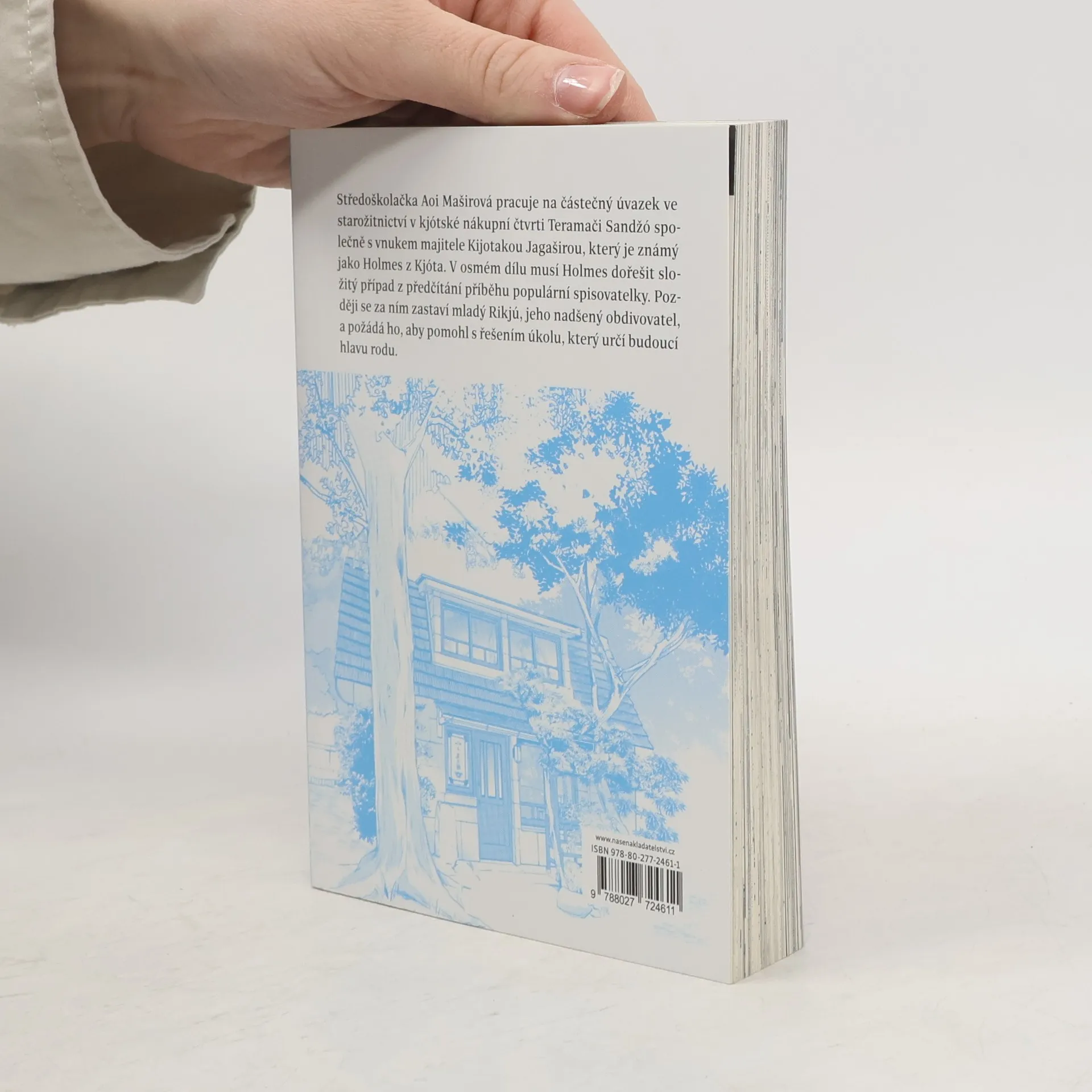 Středoškolačka Aoi Maširová pracuje na částečný úvazek ve starožitnictví v kjótské nákupní čtvrti Teramači Sandžó, společně s vnukem majitele, Kijotakou Jagaširou, který je známý jako Holmes z Kjóta. V osmém dílu musí Holmes dořešit složitý případ z předčítání populární spisovatelky. Za Holmesem se později zastaví mladý Rikjú, jeho nadšený obdivovatel, který ho požádá o vyřešení sporu o vysoké dědictví.
