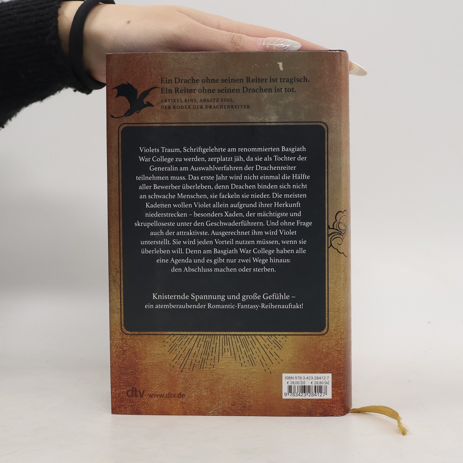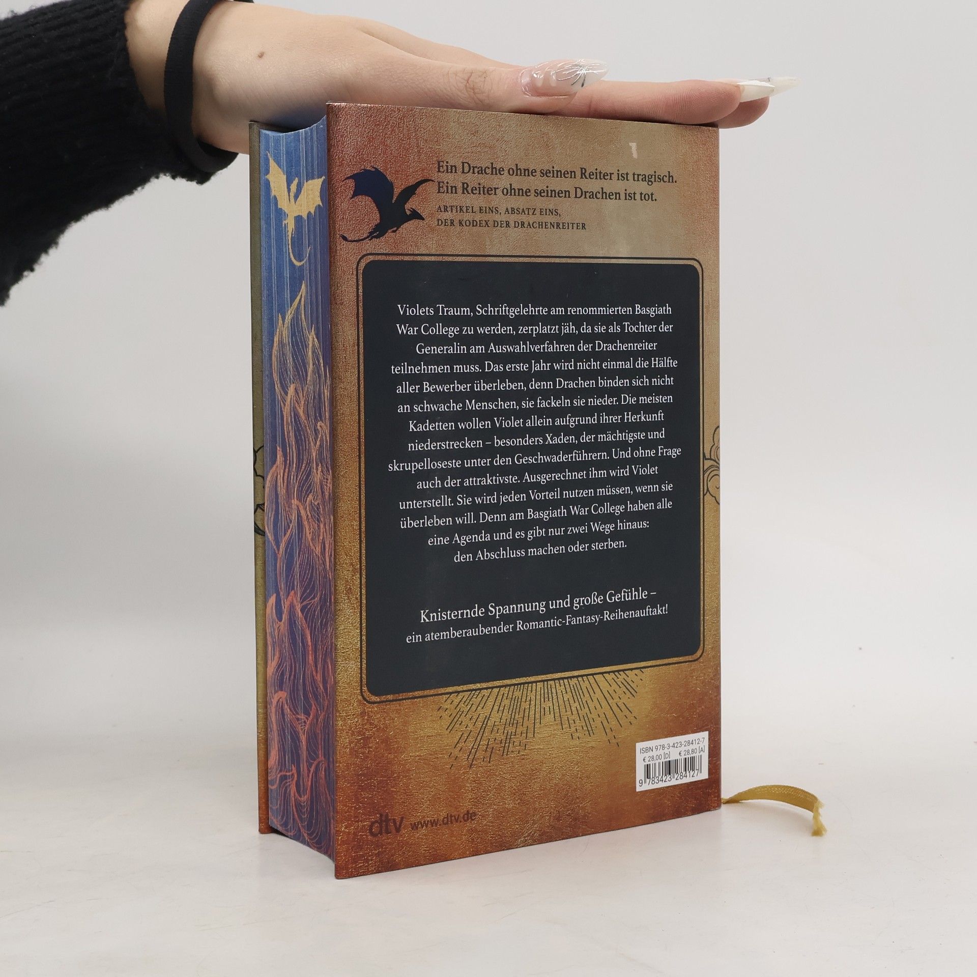 Ein Drache ohne Reiter ist tragisch, ein Reiter ohne Drachen ist tot. In dieser opulenten Deluxe-Ausgabe von ›Fourth Wing‹ erwartet die Leser ein atemberaubendes Fantasy-Abenteuer. Violet, die Schriftgelehrte am Basgiath War College, sieht ihren Traum, dort zu studieren, in Gefahr, als sie als Tochter der Generalin am Auswahlverfahren der Drachenreiter teilnehmen muss. Die Überlebenschancen sind gering, denn Drachen wählen keine schwachen Menschen – sie vernichten sie. Viele Kadetten wollen Violet aufgrund ihrer Herkunft ausschalten, insbesondere Xaden, der mächtigste und skrupelloseste Geschwaderführer, dem sie zugeteilt wird. Um zu überleben, muss Violet alle Vorteile nutzen, die ihr zur Verfügung stehen. Am Basgiath War College verfolgen alle ihre eigenen Ziele, und es gibt nur zwei Auswege: den Abschluss oder den Tod. Diese Geschichte bietet knisternde Spannung und große Emotionen und ist der Auftakt zu einer fesselnden Romantic-Fantasy-Reihe. Die Folgebände sind nicht unabhängig lesbar. Rebecca Yarros erschafft beeindruckende Drachen, während die Leser in ein unvergleichliches Abenteuer eintauchen, das sie nicht mehr loslässt.