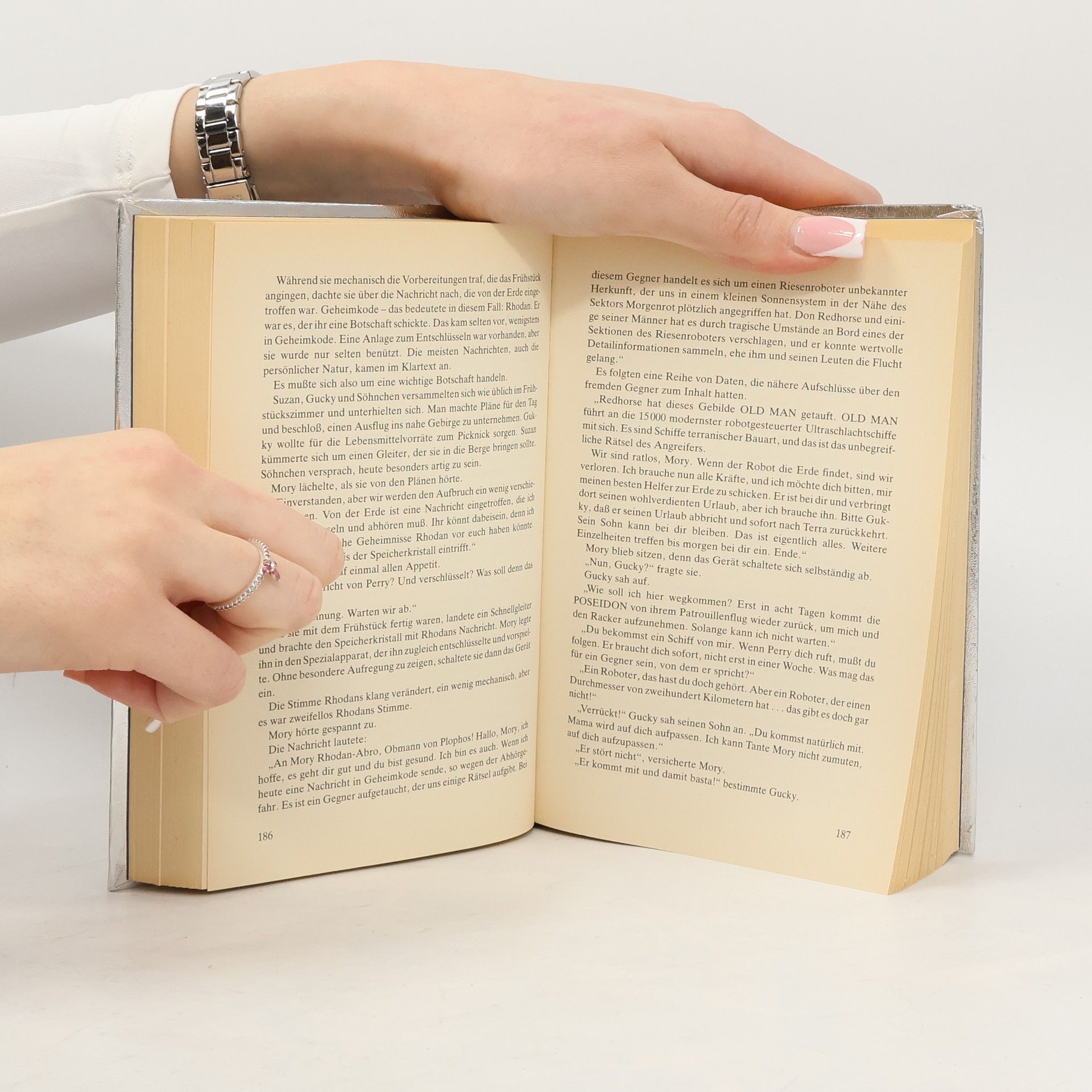 Enthaltene Original-Romane (Heftromane, #300-305):- "Alarm im Sektor Morgenrot"- "Die Plattform des Schreckens"- "Gestatten, Gucky und Sohn!"- "Im Labyrinth des Todes"- "Überfall auf Old Man"- "Die Stunde der Hypnokristalle"Die siebte Epoche der Menschheit beginnt im August des Jahres 2435 mit dem Auftauchen eines riesigen Gebildes, dessen Anblick alleine schon genügt, um Menschen in den Wahnsinn zu treiben. Old Man, der vor 50.000 Jahren als Geschenk an die Menschheit erbaute Robotgigant mit mehr als 15.000 Ultraschlachtschiffen an Bord, wendet sich gegen das Solare Imperium. Zuerst ist es nur die Folge eines Irrtums - dann wird der Gigant von einer fremden Macht übernommen und zur absolut tödlichen Bedrohung. Perry Rhodan ist machtlos. Ein anderes Problem schrumpft dabei fast zur Unbedeutsamkeit: das der kosmischen Freihändler und ihres Königs Roi Danton, in Wirklichkeit kein anderer als Rhodans Sohn Michael Reginald.