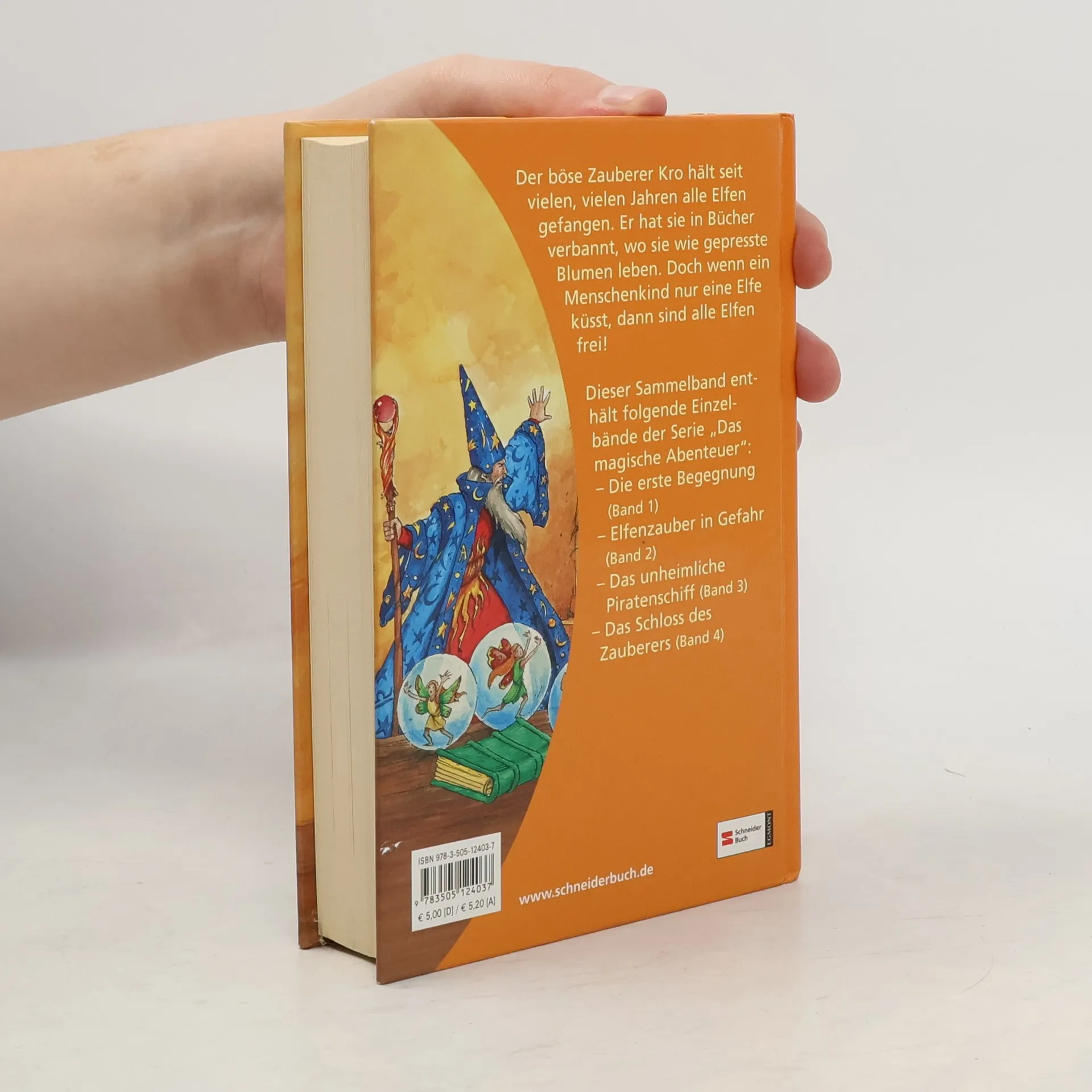 Der böse Zauberer Kro hält seit vielen, vielen Jahren alle Elfen gefangen. Er hat sie in Bücher verbannt, wo sie wie gepresste Blumen leben. Doch wenn ein Menschenkind nur eine Elfe küsst, dann sind alle Elfen frei! Dieser Sammelband enthält folgende Einzelbände der Serie „Das magische Abenteuer“: „Die erste Begegnung“ (Band 1), „Elfenzauber in Gefahr“ (Band 2), „Das unheimliche Piratenschiff“ (Band 3), „Das Schloss des Zauberers“ (Band 4)
