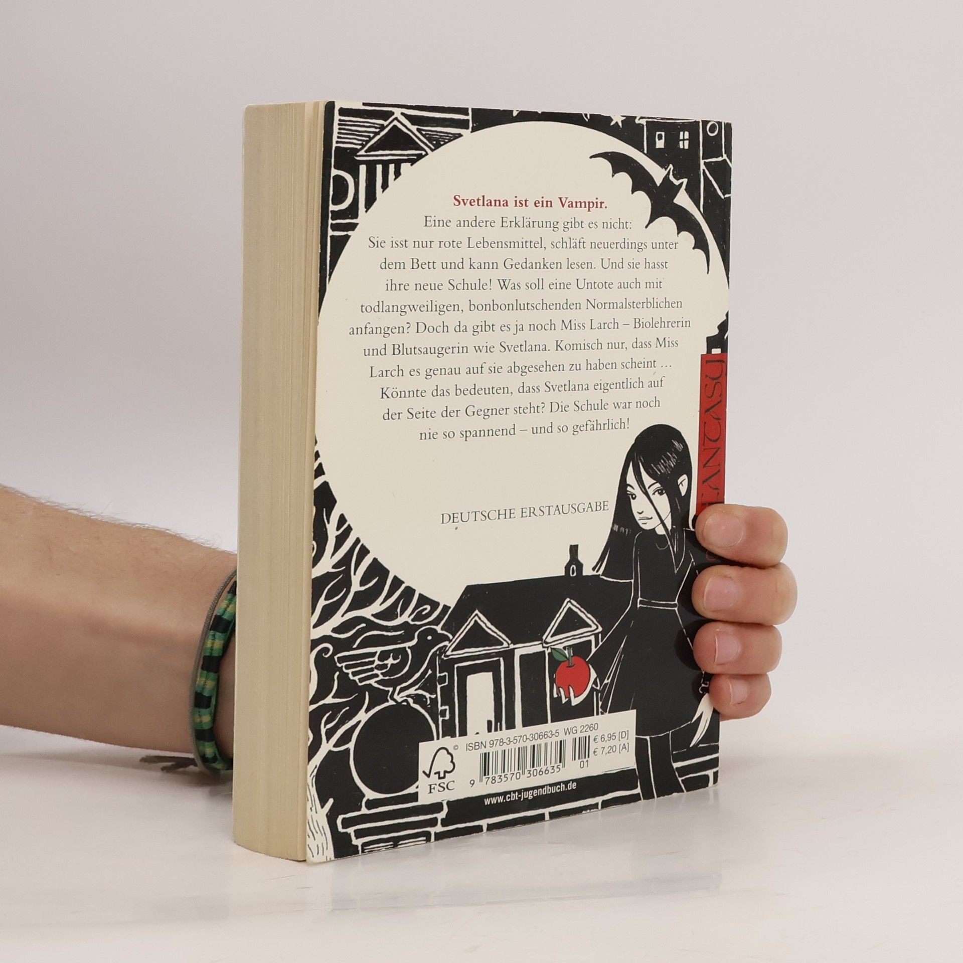 Blutsauger aufgepasst – Svetlana Grimm ist da! Svetlana ist ein Vampir. Eine andere Erklärung gibt es nicht: Sie isst nur rote Lebensmittel, schläft neuerdings unter dem Bett und kann Gedanken lesen. Und sie hasst ihre neue Schule. Was soll eine Untote auch mit todlangweiligen, bonbonlutschenden Normalsterblichen anfangen? Doch da gibt es ja noch Miss Larch – Biolehrerin und Blutsaugerin wie Svetlana. Komisch nur, dass Miss Larch es genau auf sie abgesehen zu haben scheint … Könnte das bedeuten, das Svetlana eigentlich auf der Seite der Gegner steht? Die Schule war noch nie so spannend – und so gefährlich!
