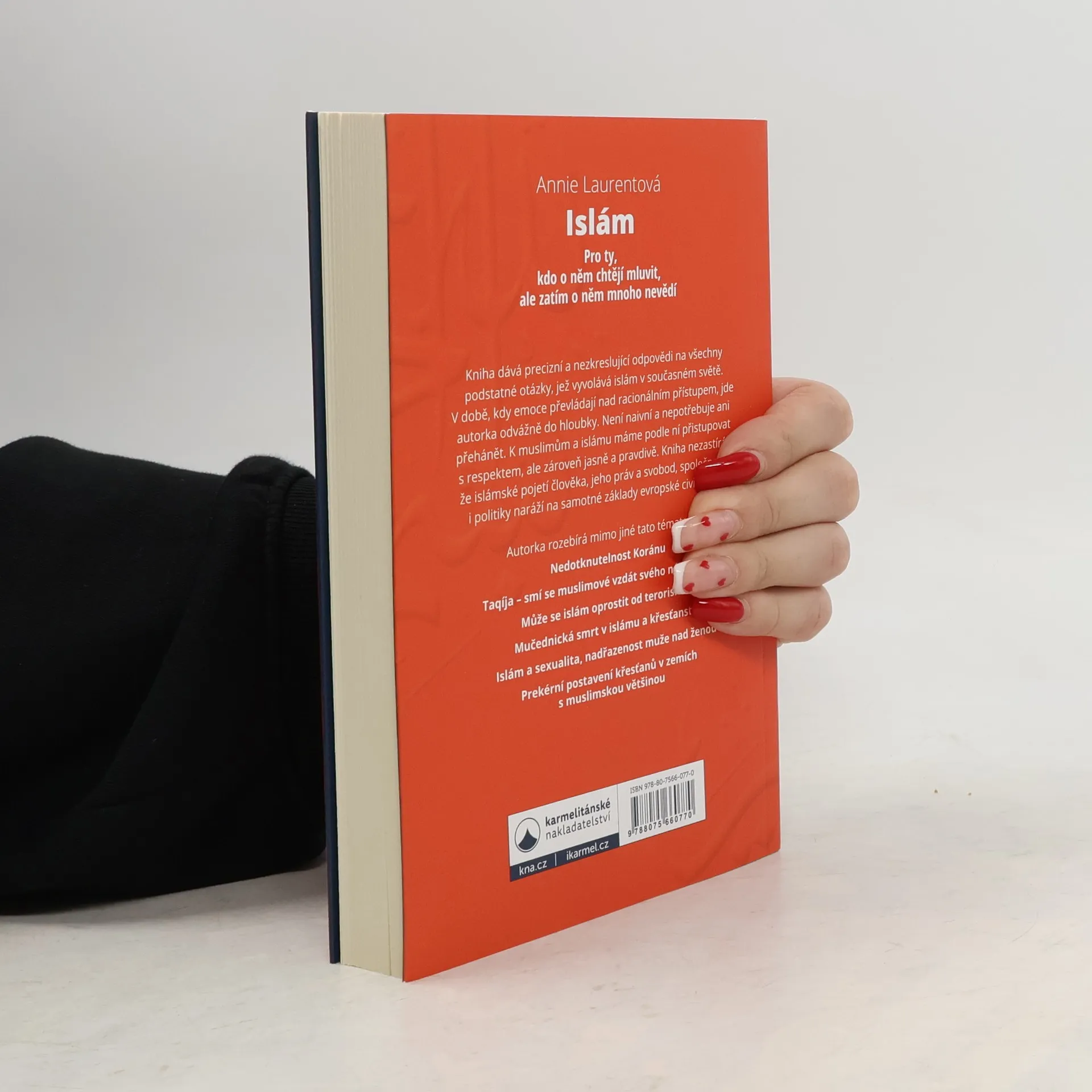 Kniha dává precizní a nezkreslující odpovědi na všechny podstatné otázky, jež vyvolává islám v současném světě. V době, kdy emoce převládají nad racionálním přístupem, jde autorka odvážně do hloubky. Není naivní a nepotřebuje ani přehánět. K muslimům a islámu máme podle ní přistupovat s respektem, ale zároveň jasně a pravdivě. Kniha nezastírá, že islámské pojetí člověka, jeho práv a svobod, společnosti i politiky naráží na samotné základy evropské civilizace. Autorka rozebírá mimo jiné tato témata: Nedotknutelnost Koránu Taqíja – smí se muslimové vzdát svého náboženství? Může se islám oprostit od terorismu? Mučednická smrt v islámu a křesťanství Islám a sexualita, nadřazenost muže nad ženou Prekérní postavení křesťanů v zemích s muslimskou většinou