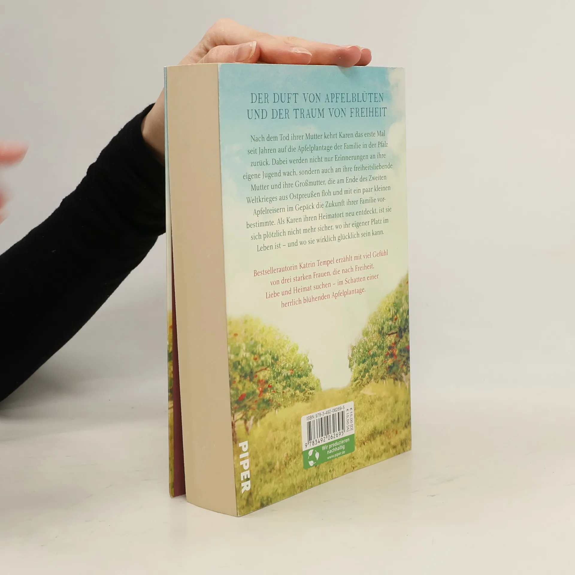 Der Duft von Apfelblüten und der Traum von Heimat ... Die erfolgreiche Bestsellerautorin Katrin Tempel erzählt in ihrem neuen atmosphärischen Generationenroman von drei starken Frauen, die im Schatten einer blühenden Apfelplantage nach Freiheit, Liebe und Heimat suchen. Nach dem Tod ihrer Mutter kehrt die amerikanische Modedesignerin Karen auf die elterliche Apfelplantage in der Pfalz zurück, um dort das Erbe zu regeln und die letzten alten Bäume zu roden. Dabei werden nicht nur Erinnerungen an ihre eigene bewegte Jugend wach, sondern auch an ihre freiheitsliebende Mutter und ihre Großmutter, die am Ende des Zweiten Weltkrieges mit ein paar kleinen Apfelreisern die Zukunft ihrer Familie vorbestimmte. Als Karen dann auch noch ihre alte Jugendliebe wiedersieht, kann sie sich bald vorstellen, vielleicht doch zu bleiben und nicht nur die alte Apfelplantage wieder aufblühen zu lassen. »Katrin Tempel verwebt Vergangenes und Zeitgenössisches so gefühlvoll, dass der Leser dieses Buch gar nicht mehr weglegen mag.« Ruhr Nachrichten über »Mandeljahre«