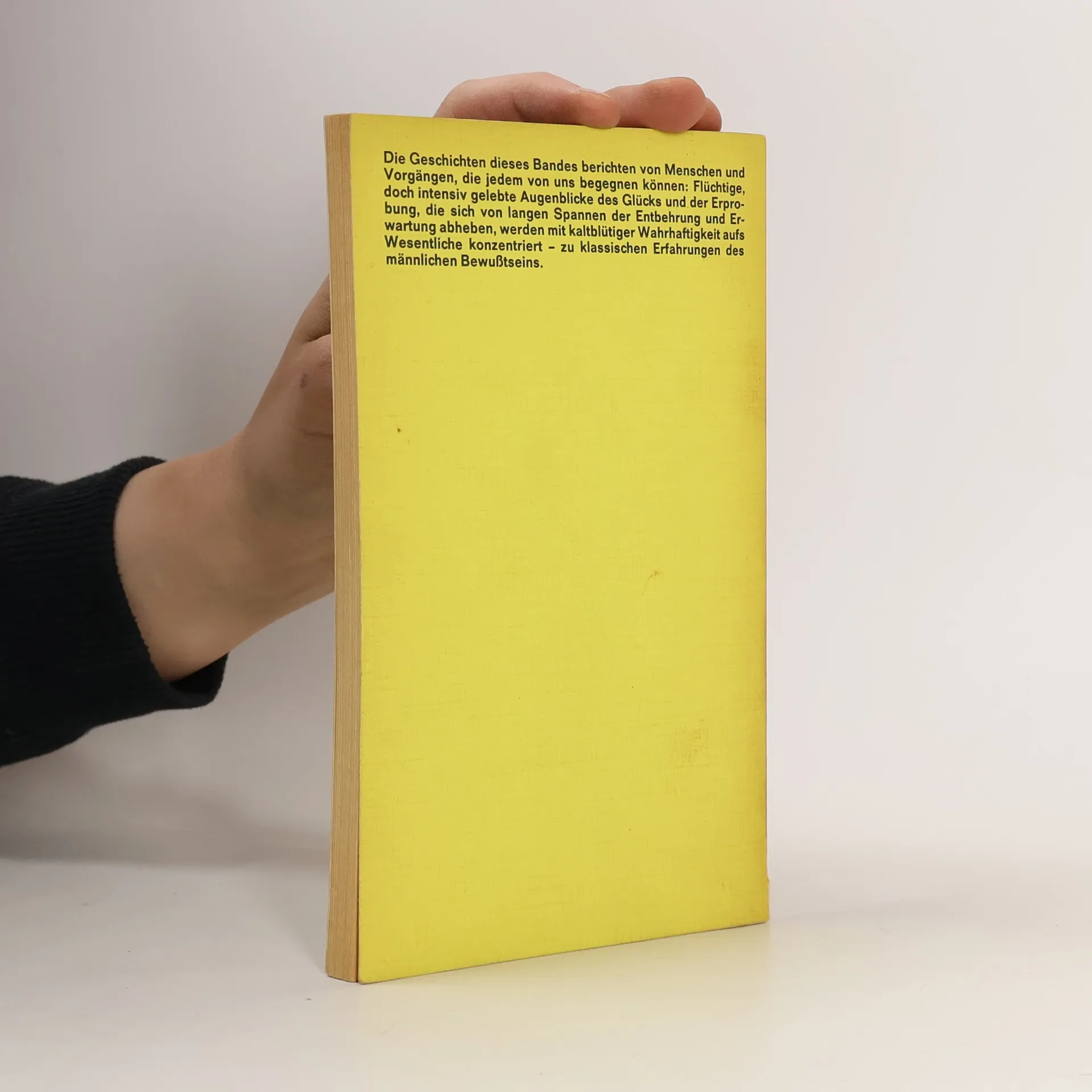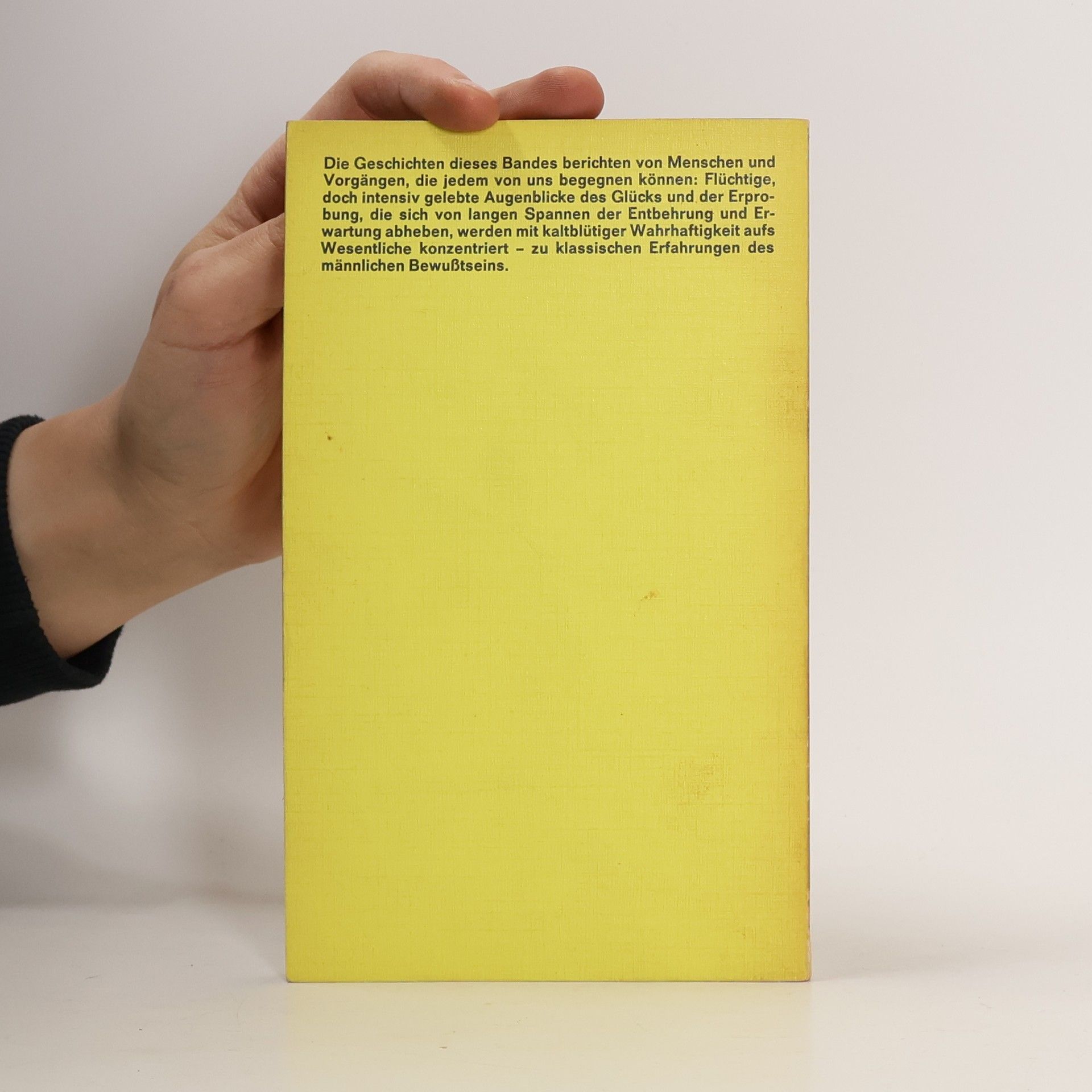 Die Geschichten dieses Bandes berichten von Menschen und Vorgängen, die jedem von uns begegnen können: Flüchtige, doch intensiv gelebte Augenblicke des Glücks und der Erprobung, die sich von langen Spannen der Entbehrung und Erwartung abheben, werden mit kaltblütiger Wahrhaftigkeit aufs Wesentliche konzentriert - zu klassischen Erfahrungen des männlichen Bewusstseins.