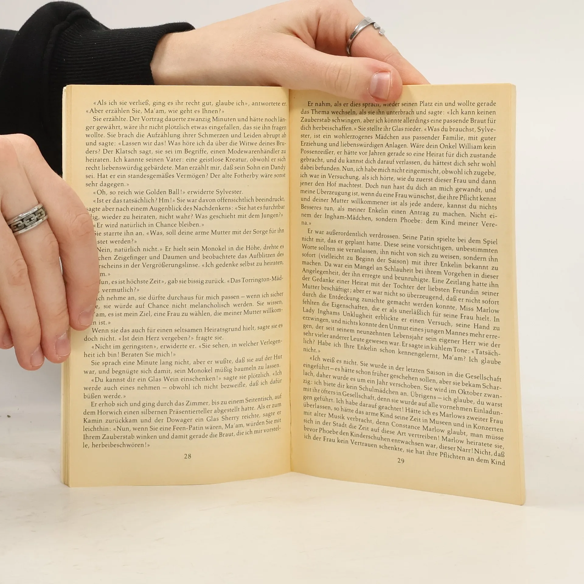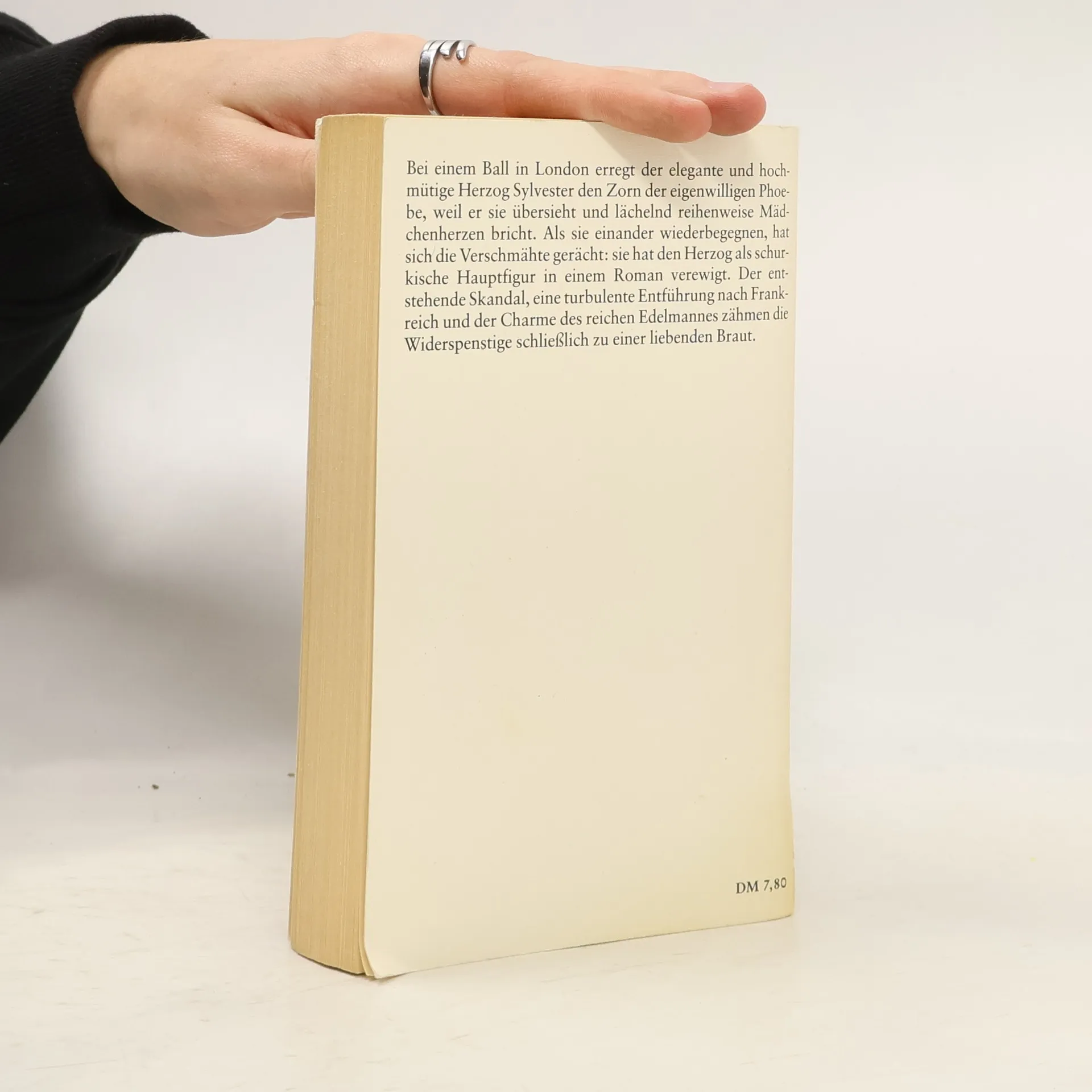 Der 28jährige Herzog Sylvester von Salford, mit Reichtum, Eleganz, aber auch Hochmut ausgestattet, ist sich sicher: die junge Phoebe, Enkelin seiner Patin Lady Ingham, wünscht sich wie jedes heiratsfähige Mädchen nichts sehnlicher, als ihn zu ehelichen. Warum sonst betonen ihre Eltern bei seinem Besuch auf Gut Austerby die Vorzüge des so erfrischend einfachen Mädchens? Doch Phoebe selbst will keineswegs zu einer unerwünschten Heirat gezwungen werden. So sieht Phoebe auch keinen anderen Ausweg, als in einer stürmischen Nacht mit dem Nachbarssohn Tom Orde durchzubrennen. Für einen Mann von Sylvesters Stolz unerträglich! Er ahnt indes nicht die wahren Beweggründe des widerspenstigen Mädchens: Nach ihrer ersten Begegnung hatte Phoebe ihn in ihrem Debütroman in der Rolle des Schurken verewigt. Und nun steht die Veröffentlichung des Romans über die Londoner Society kurz bevor. Der Skandal liegt in der Luft.