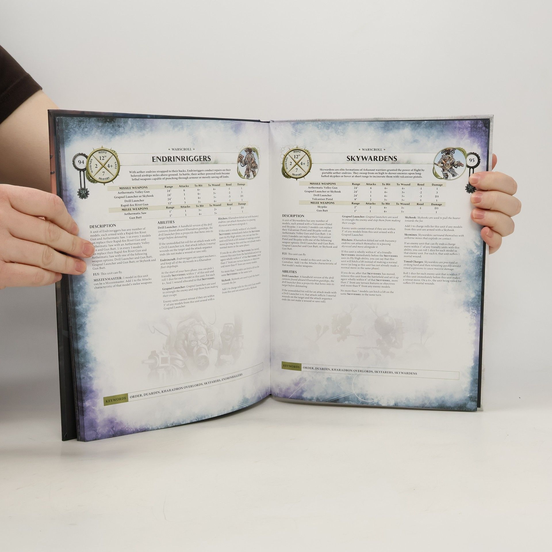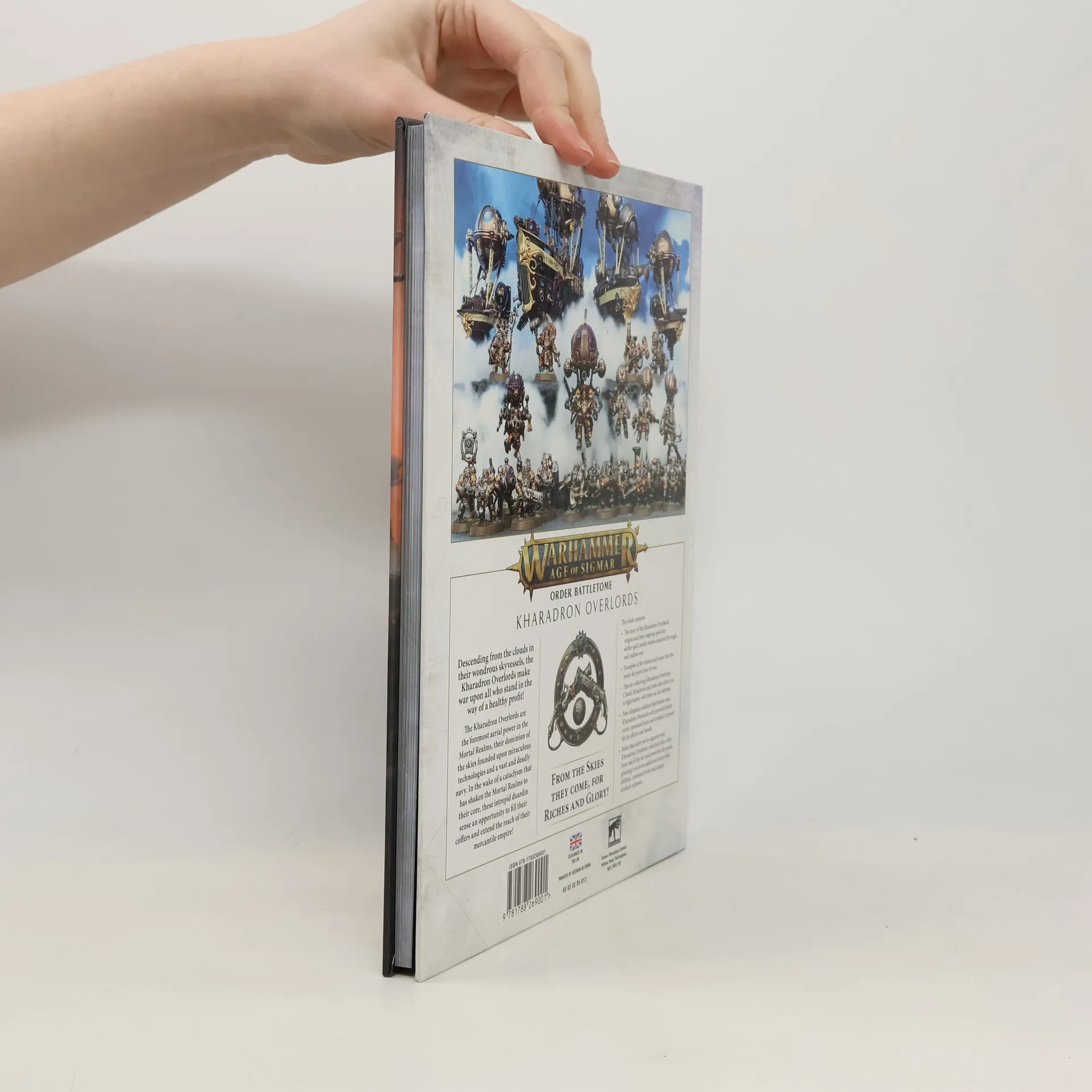 This 96-page hardback book The history of the Kharadron OverlordsLore and art that brings the world of the Kharadron Overlords to lifeTips for collecting Kharadron Overlords Citadel miniatures, and rules that allow you to fight battles with them on the tabletopAllegiance abilities that bestow a wide selection of battle traits, command traits, artefacts of power and great endrinworks – unique and powerful upgrades for your skyvesselsA battleplan representing a daring rescue attempt by the Kharadron Overlords to recover lost comrades – and their aether-gold!Rules themed around the six most famous Sky-ports, from the master sailors of Barak-Zilfin to the allegiances of Dispossessed, Kharadron Overlords and Fyreslayers of Barak-Thryng