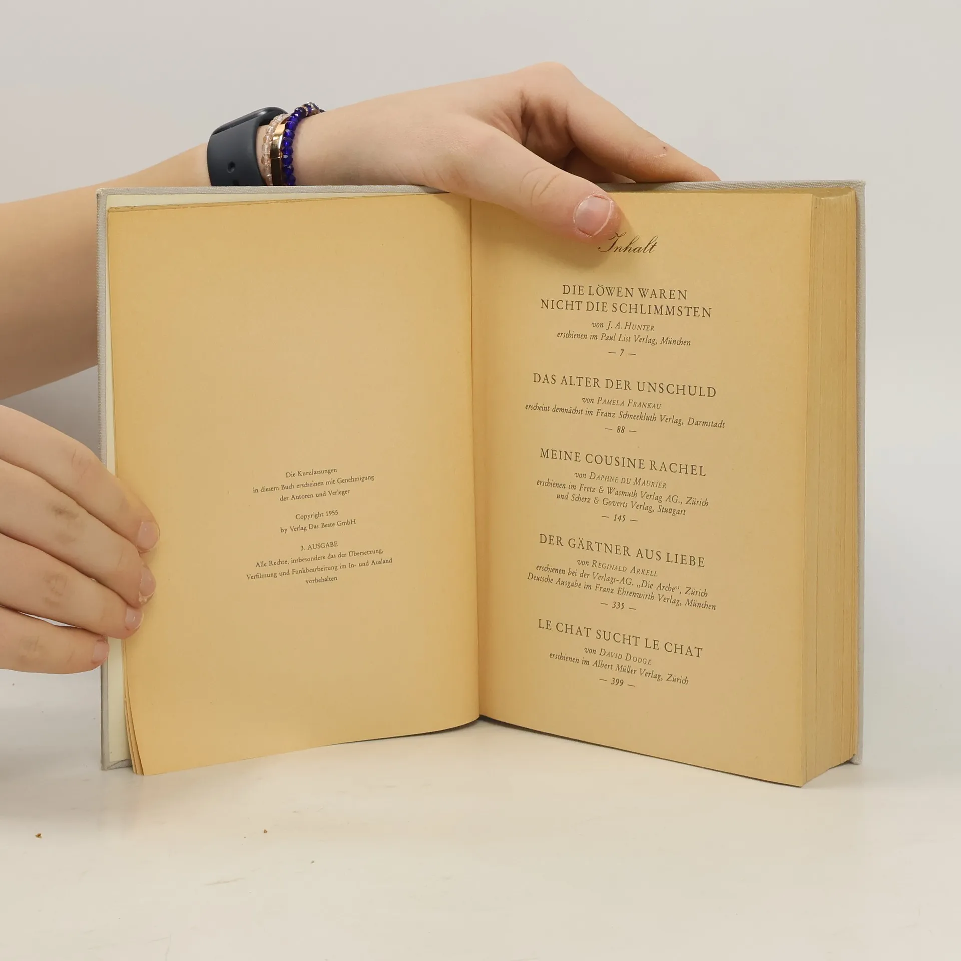 Reader's Digest Auswahlbücher: Die Löwen waren nicht die Schlimmsten / Das Alter der Unschuld / Meine Cousine Rachel / Der Gärtner aus Liebe / Le Chat sucht Le Chat, Daphne du Maurier, Reginald Arkell, Pamela Frankau, David Dodge, J. A. Hunter