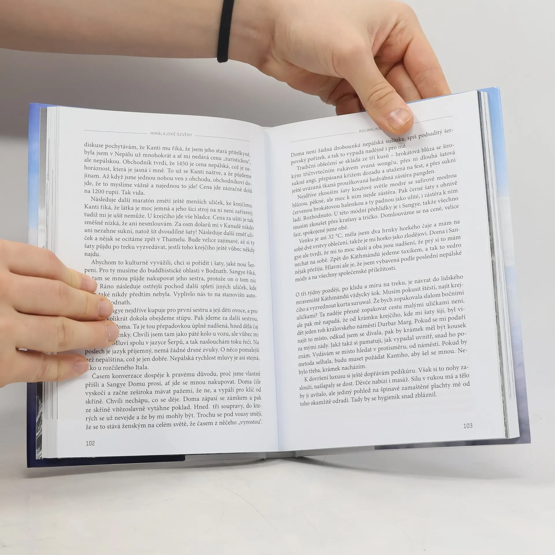 Himálaj. Zvláštní svět podivuhodné, podmanivé krásy, kde na vrcholech osmitisícových štítů snad skutečně leží klíče od nebeských bran. Svět barevný a pitoreskní, v mnoha ohledech neznámý, ale vždy usměvavý a přátelský. Svět, kde se jako v magickém kaleidoskopu prolínají drsné anezkrocené přírodní síly, exotická kultura i sugestivní hlasy dvou významných náboženských a filosofických systémů, buddhismu a hinduismu. Každá myšlenka něco ovlivní, každý čin zanechá stopu na bílé pláni možných událostí. Tam vysoko v Nepálu jako by lidské osudy byly skryty a přítomny v každém okamžiku času, v každém slunečním paprsku, v každé dešťové kapce či sněhové vločce, která se jako slza snáší k zemi z modré a bílé závrati himálajského nebe. Byla jsem tam šťastná. Óm maní padmé húm.
