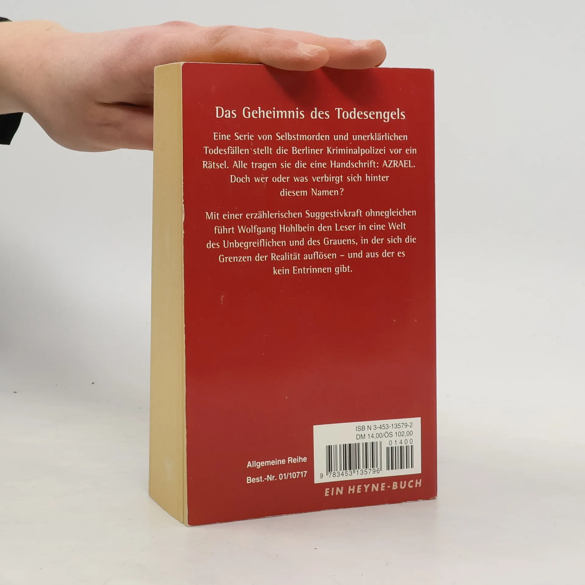 Das Geheimnis des Todesengels. Eine Serie von Selbstmorden und unerklärlichen Todesfällen stellt die Berliner Kriminalpolizei vor ein Rätsel. Nur eines verbindet die Fälle: ein Zettel mit der Aufschrift "Azrael", der an jedem Tatort gefunden wird...