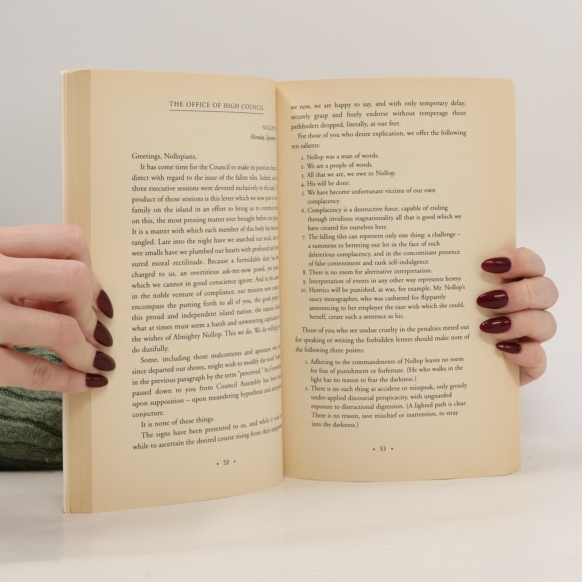 Nevin Nollop left the islanders of Nollop with the treasured legacy of his pangram the quick brown fox jumps over the lazy dog. But as the letters begin to crumble on the monumental inscription, the island's council forbids the use of the lost letters and silence threatens Ella and her family.