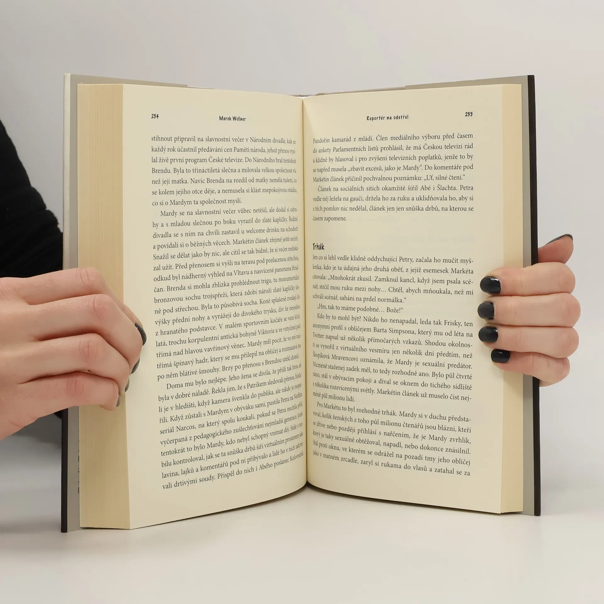 Kde končí svoboda slova, co je pravda a lež, jak se dá neúspěšné pátrání obrátit v cenzuru a pomluva v ničivou zbraň? Šéfa nejznámějšího televizního investigativního pořadu, kterého roky nemohli zničit politici, nakonec za pár dnů zničí kolegyně. Všechno, co jste chtěli vědět o zákulisí boje o politický vliv v televizi, ale báli jste se zeptat. Významný český novinář a zakladatel pořadu Reportéři ČT, Marek Wollner, zažil po několika desetiletích uznání tvrdý pád na dno. Poté, co jej soud zprostil všech obvinění, přichází s autobiografickým románem, který se nevyhýbá ničemu.
