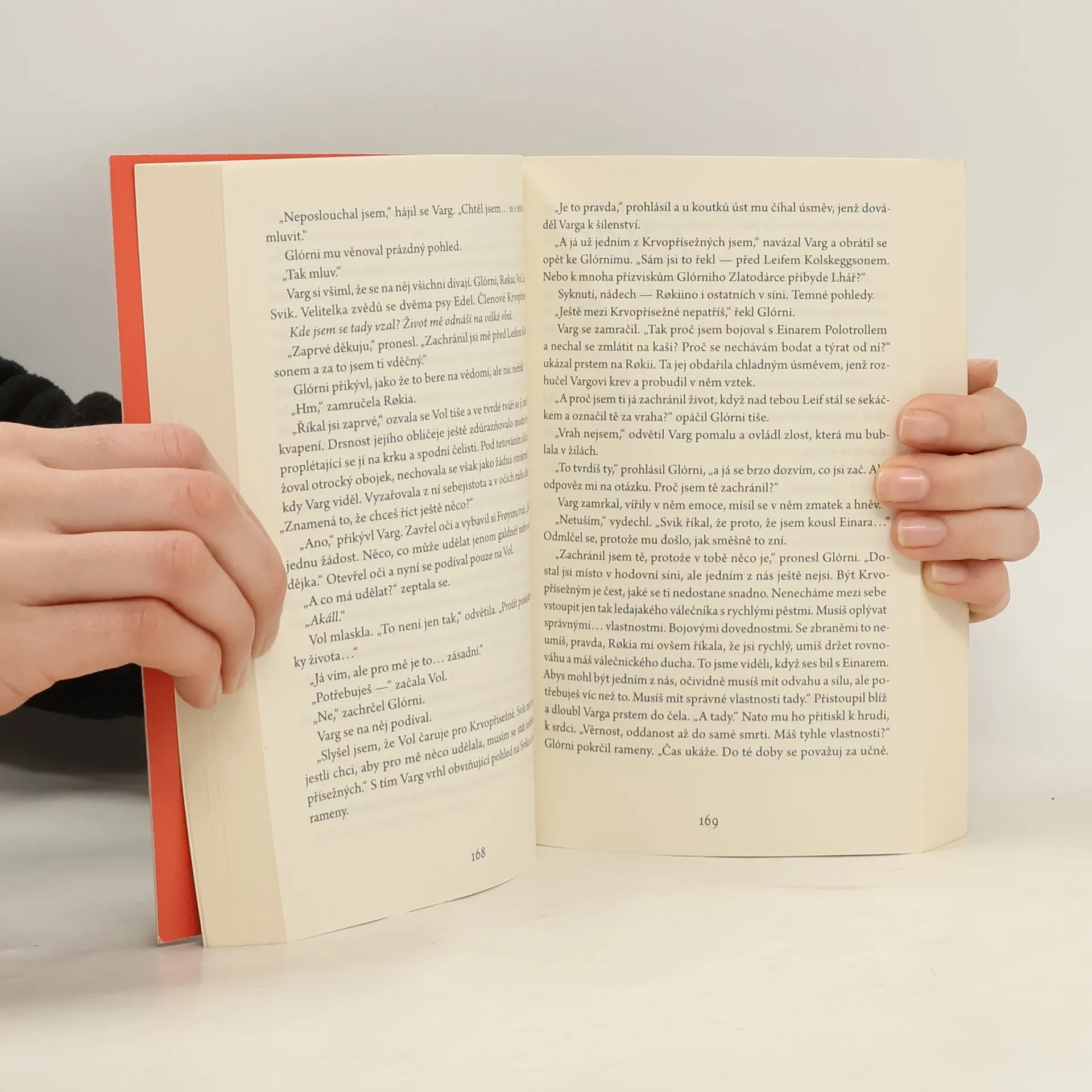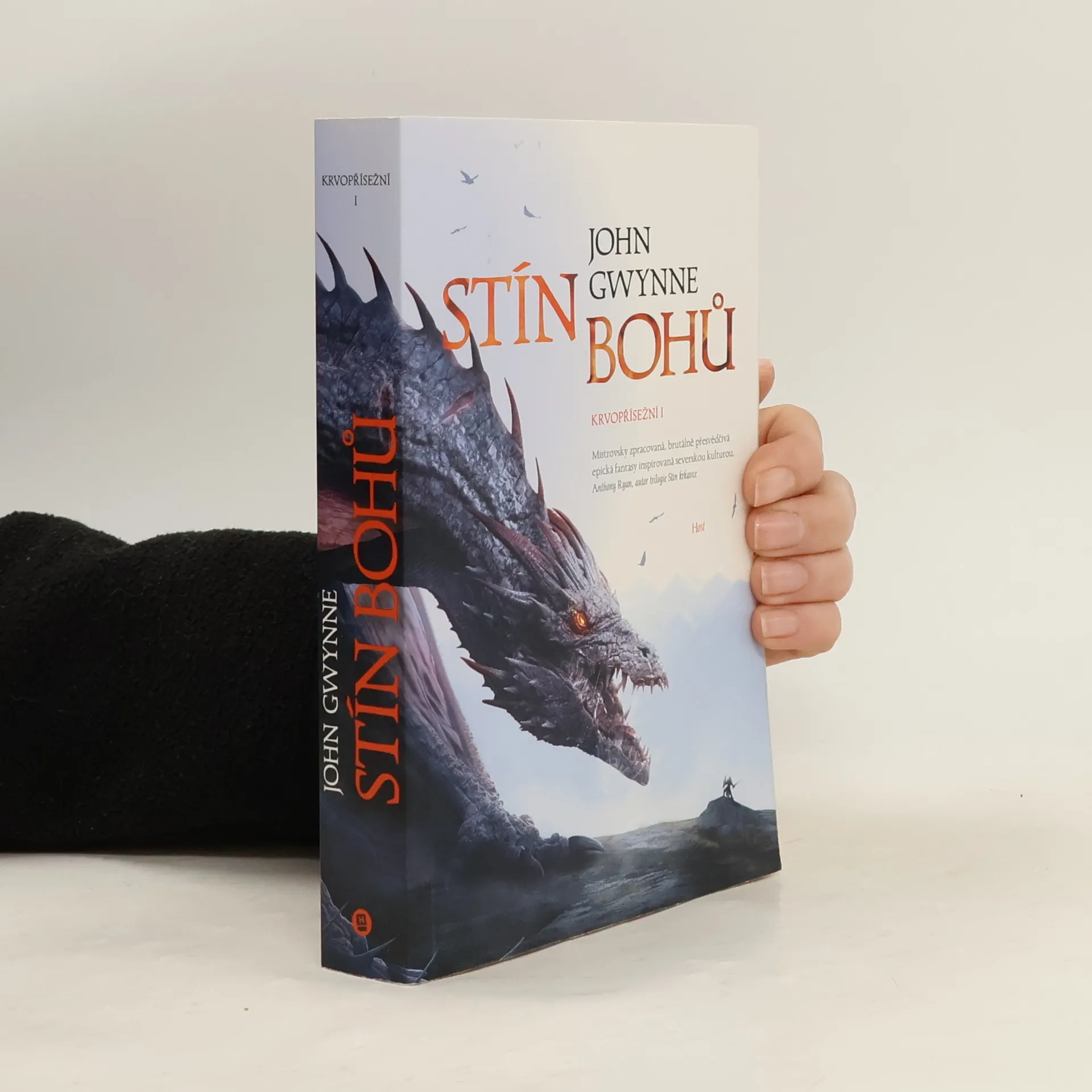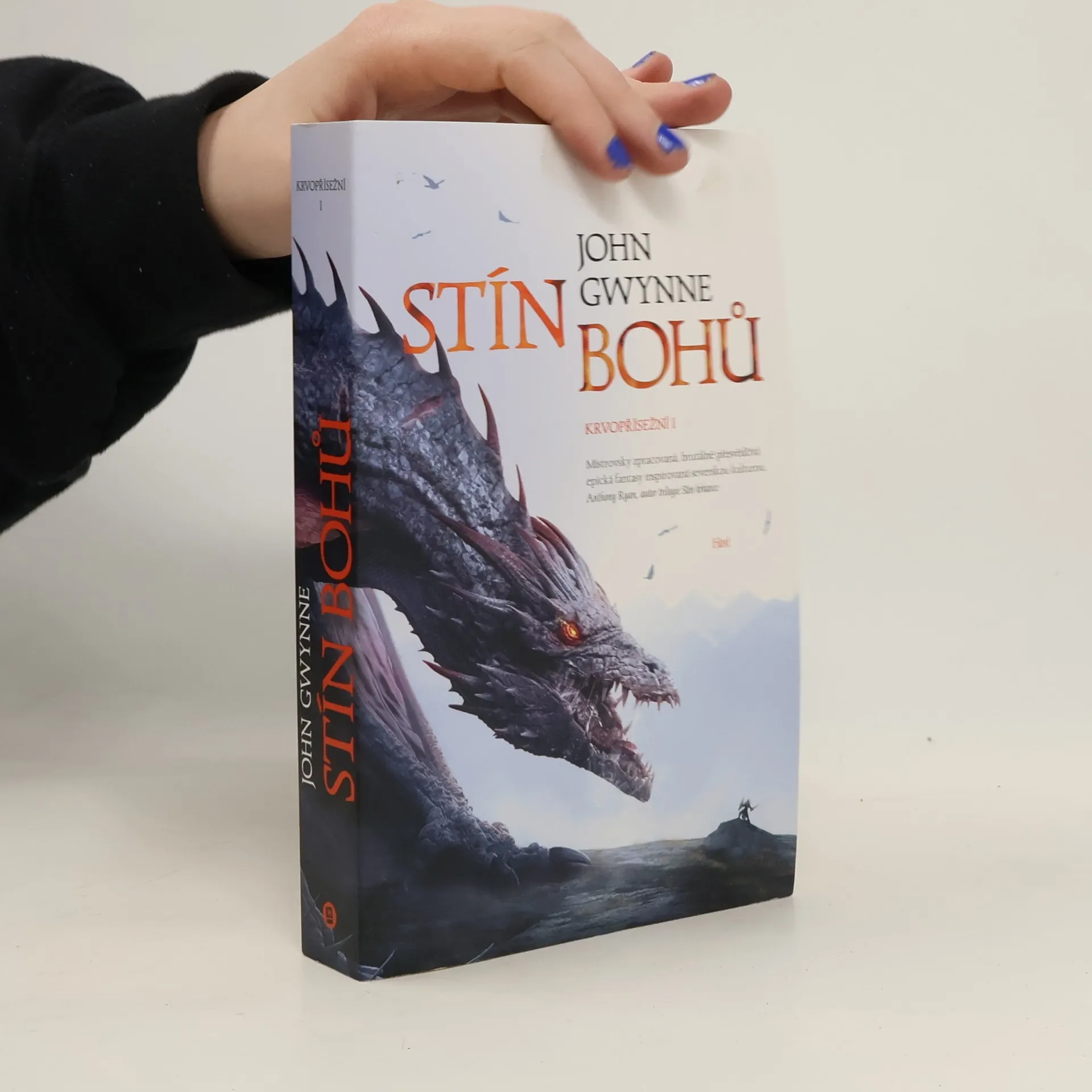 Úvodní díl epické fantasy ságy anglického autora, která je zasazena do severského světa plného mýtů a magie. Uplynula celá staletí od doby, kdy spolu bohové bojovali a navzájem se vyhubili. Zůstaly pouze jejich kosti, slibující velkou moc těm, kdo jsou dost stateční, aby se je vydali hledat. Vigrídem se šíří zvěsti o válce a příběh sleduje kroky tří bojovníků: lovkyně na nebezpečné výpravě, bojovnice z rodu mocného jarla toužící po bitevní slávě a otroka, který usiluje o pomstu mezi žoldnéři známými jako Krvopřísežní. Všichni tři budou utvářet osud světa, když na něj opět padne stín bohů. Nakladatelská anotace. Kráceno.