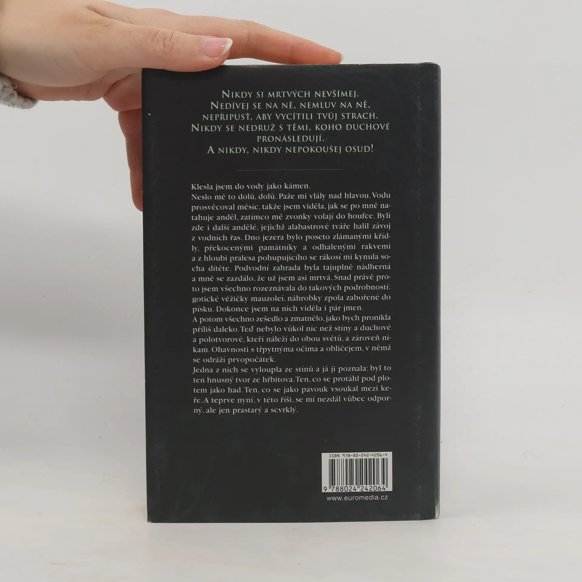 Amelia Grayová restauruje staré hřbitovy a píše blog o všem, co souvisí s tradicí pohřbívání na americkém Jihu. Kromě toho má také schopnost vidět duchy, o čemž však – na rozdíl od těch prvních dvou věcí – málokdo ví. Poté, co se málem stala obětí pomateného vraha, vezme Amelia zakázku na obnovu starého hřbitova v městečku Asher Falls v Jižní Karolíně. Brzy však začíná mít neblahé tušení, že se zde ocitla z úplně jiného, mnohem temnějšího důvodu… Proč se na dně Zvonkového jezera nachází ještě jeden hřbitov? Proč to Ameliu pořád táhne ke hrobu, který objevila v lese? Jako by Asher Falls, tomu chřadnoucímu království, někdo sežral duši. Lidi, domy, dokonce i samotný vzduch, všechno jí zde připadá poskvrněné, nasáklé zlem. K obnově může dojít ale jedině tehdy, pokud nejprve Amelia objeví pravdu. Pravdu o Asher Falls – i pravdu o sobě samotné… Druhý díl z vynikající série Amandy Stevensové o Hřbitovní královně, který doslova uchvátil čtenáře po celém světě.