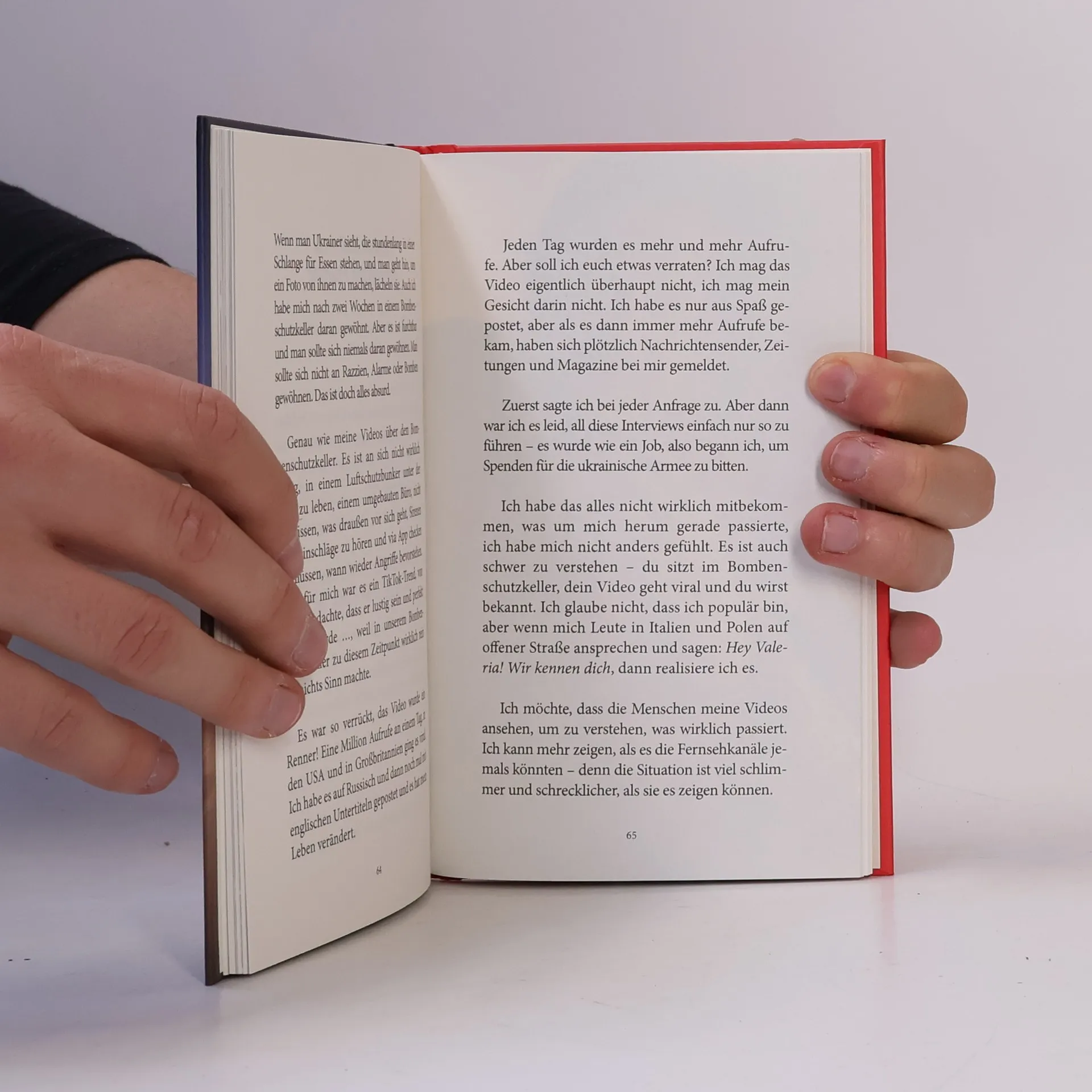50 Mio. TikTok Views: die wahre Geschichte „Als Russland mein Land, die Ukraine, überfiel, flüchteten meine Eltern, mein Hund und ich in einen mir mehr als skurril erscheinenden Bombenschutzkeller. Und weil es dort WLAN gab und die Tage verdammt lange und auch langweilig waren, postete ich Videos, die mein neues Zuhause vorstellen sollten – manche davon gingen dann sogar um die Welt. Aber meine Geschichte ist eigentlich eine ganz andere: Es ist die eines jungen Mädchens voll mit großen Träumen, das die Welt entdecken wollte und den Krieg für einen schlechten Scherz hielt. Bis zu dem Tag, an dem ich erkennen musste, dass ich mittendrin bin im größten Alptraum meines Lebens.“ Valeria beschließt, der Welt ihre Heimatstadt Tschernihiw zu zeigen und die wahren Geschichten zu erzählen. Es sind Bilder und Geschichten, die wir uns alle im 21. Jahrhundert mitten in Europa nicht vorstellen konnten und wollten. Und das Grauen endet nicht einmal mit ihrer Flucht nach Mailand, denn dort angekommen, holen Putins Bomben sie ein und treffen sie mitten ins Herz. „It is horrible when you hear bombs, but you can’t do anything – you are just a toy.“ Neben Mut und Tapferkeit ist es vielleicht der Humor, der tief berührt, da er für einen Hauch Normalität und Lebensfreude in der Tragödie spricht. So verliert die Ödnis eines Luftschutzbunkers ein wenig ihren Schrecken. n-tv