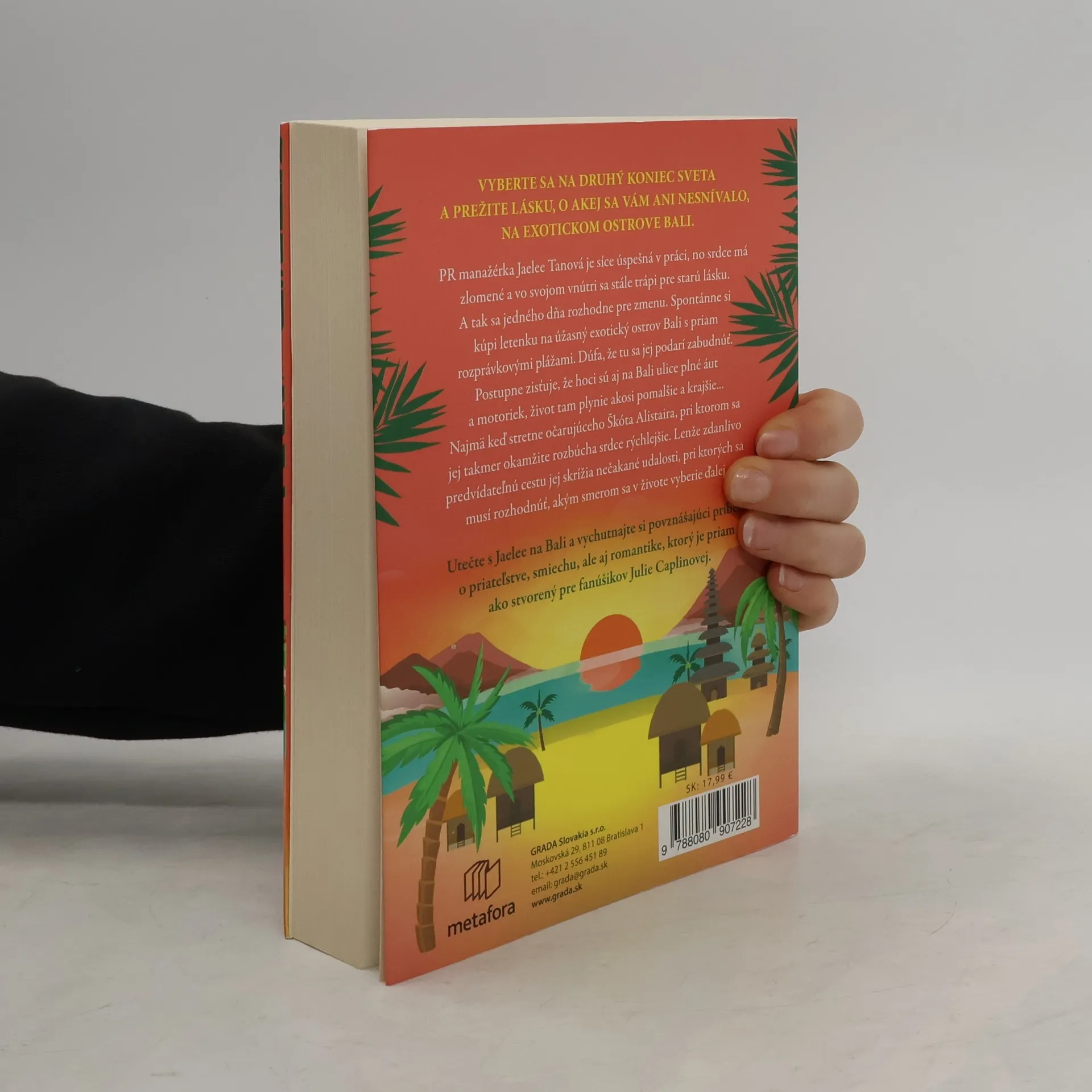 PR manažérka Jaelee Tanová je síce úspešná v práci, no srdce má zlomené a vo svojom vnútri sa stále trápi pre starú lásku. A tak sa jedného dňa rozhodne pre zmenu. Spontánne si kúpi letenku na úžasný exotický ostrov Bali s priam rozprávkovými plážami. Dúfa, že tu sa jej podarí zabudnúť. Postupne zisťuje, že hoci sú aj na Bali ulice plné áut a motoriek, život tam plynie akosi pomalšie a krajšie... Najmä, keď stretne očarujúceho Škóta Alistaira, pri ktorom sa jej takmer okamžite srdce rozbúcha rýchlejšie. Lenže zdanlivo predvídateľnú cestu jej skrížia nečakané udalosti, pri ktorých sa musí rozhodnúť, akým smerom sa v živote vyberie ďalej.