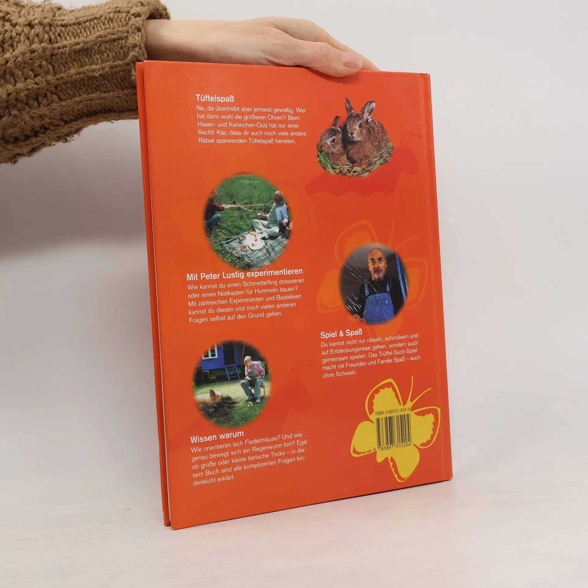 Enth.: Pferde; Hunde; Katze; Hasen; Kuh; Schwein; Maulwurf; Wildschwein; Fuchs; Reh; Hirsch; Fledermäuse; Schmetterlinge; Hummel; Wespen; Ameise; Spinnen; Schnecken; Regenwürmer; Schlangen; Eidechsen; Fische