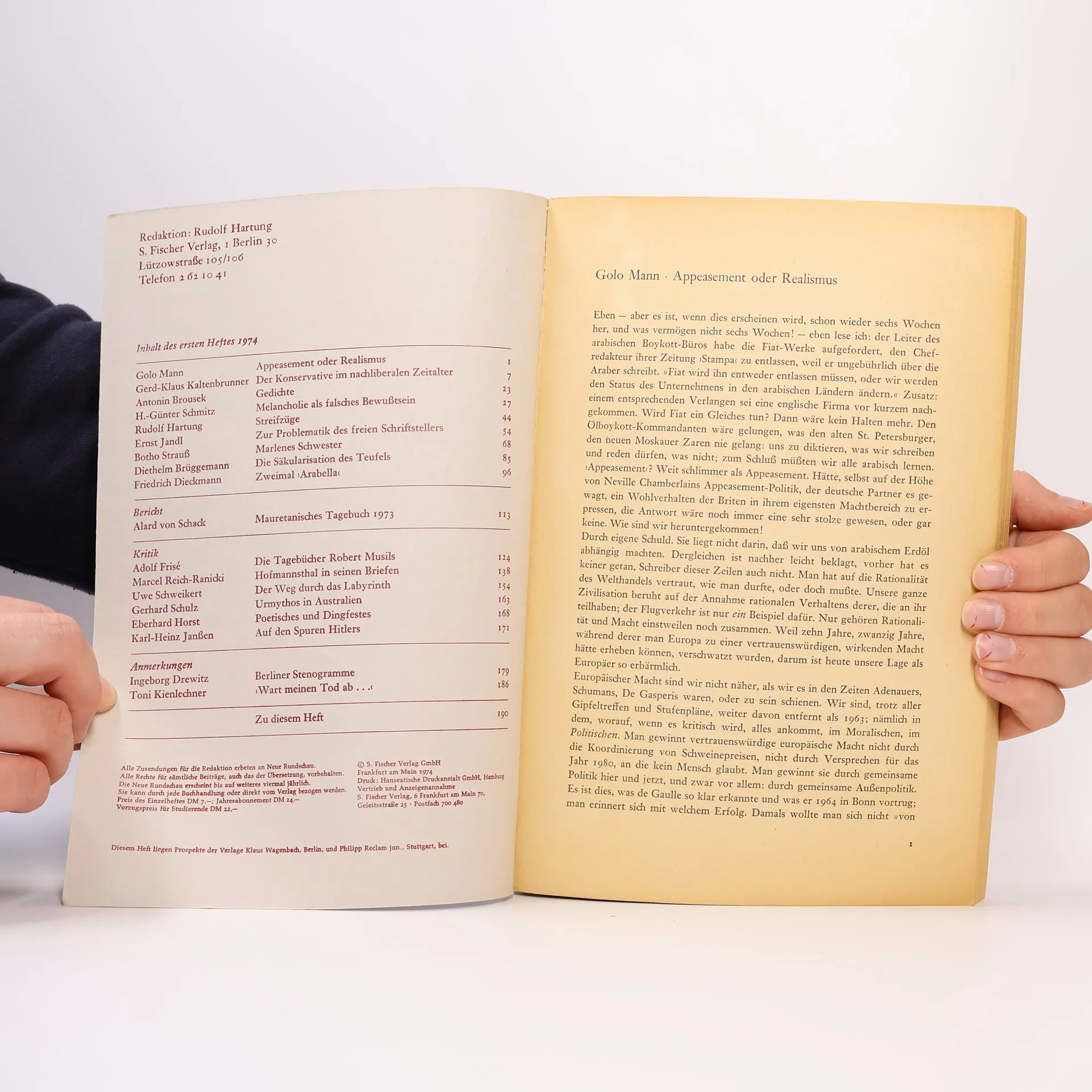 Neue Rundschau. 85.Jahrgang 1974. Heft 1, Autorenkollektiv