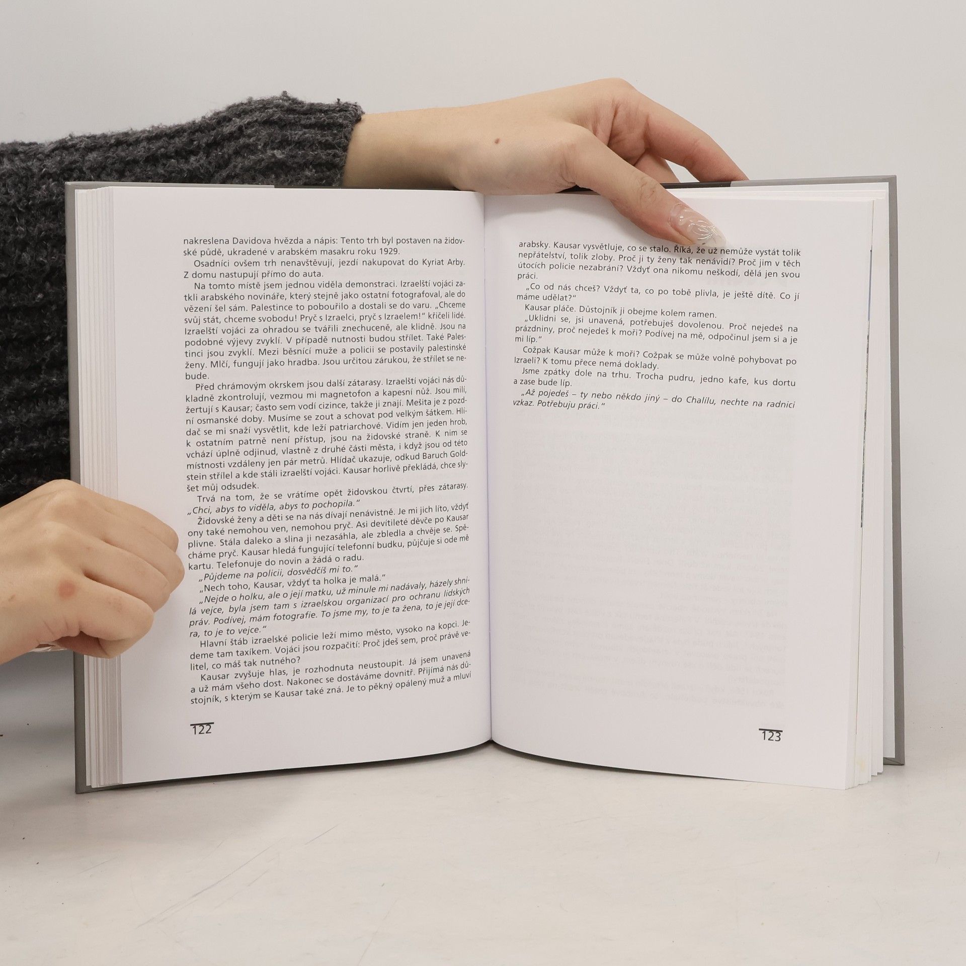 Pestrá mozaika dojmů, úvah, komentářů a zamyšlení z cesty po oblasti, která je jedním z neuralgických bodů současného světa i kolébkou jeho kultury. Kniha je na rozhraní cestopisu a historicko-politické publicistiky. Poznatky a zážitky z návštěv Izraele a Palestiny z pera redaktorky Českého rozhlasu. Obsah: Tel Aviv, Gaza, Jeruzalém, Betlém, Hebron-Chalíl, Beduíni, Amos Oz, Náblus, Ariel, Jericho - Aríha, Mohamed Said Ahmed, Haifa, Vesnice, které nejsou na mapě, Akko, Golany, Mrtvé moře, Přejdi Jordán, Rudé moře, Post scriptum, Chronologie některých důležitých událostí.