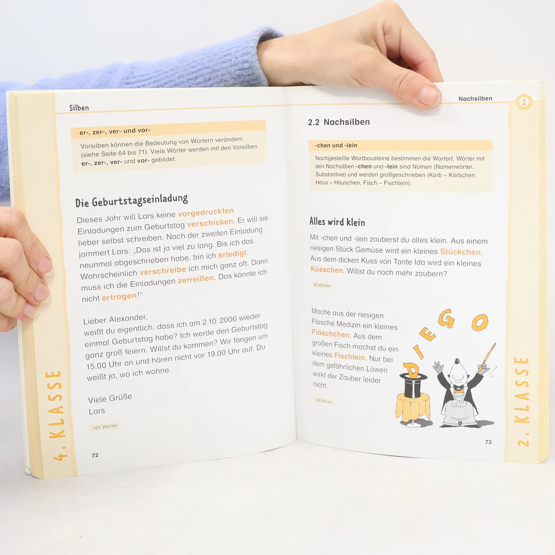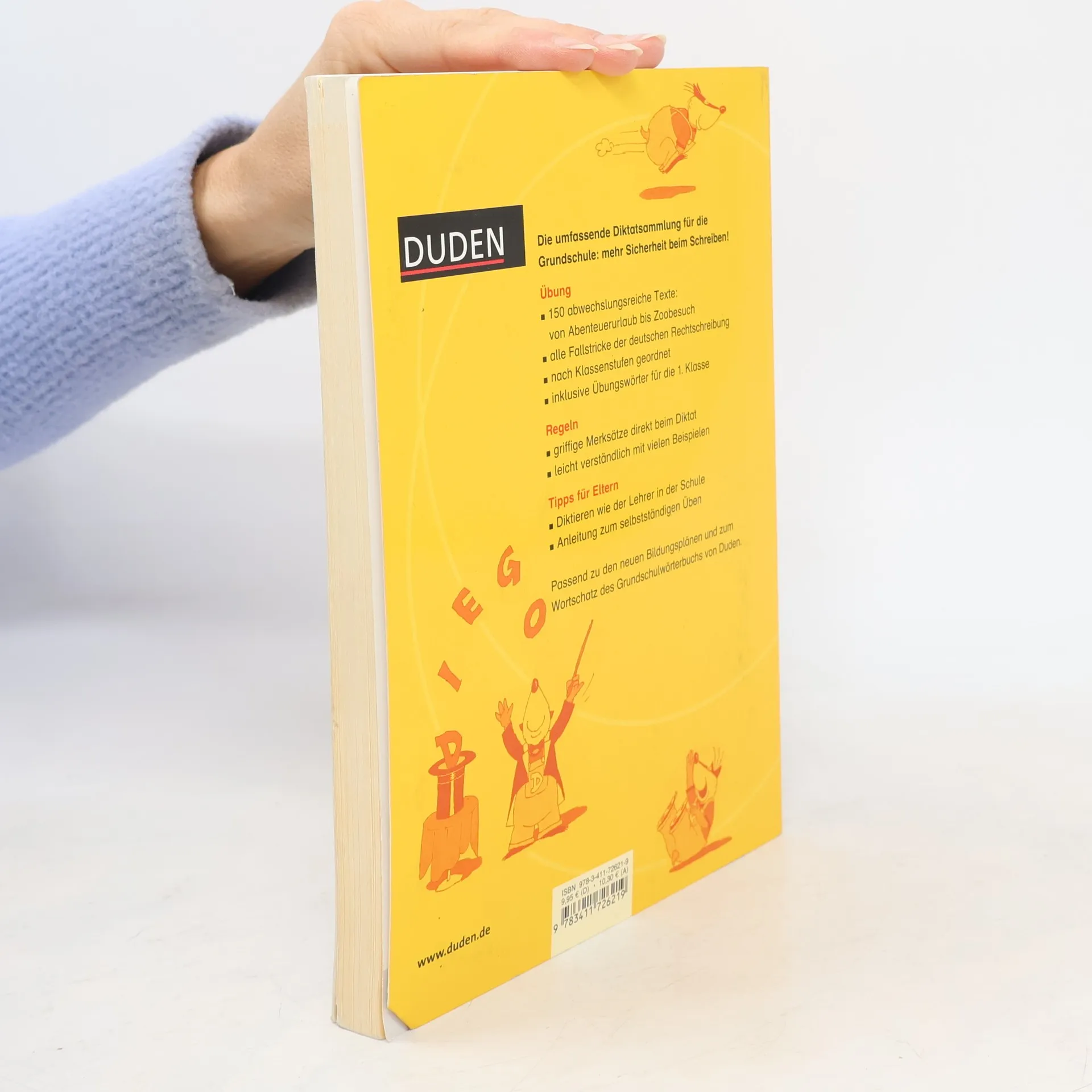 Das Buch richtet sich an die Eltern der Grundschüler, die mit ihren Kindern anhand der Diktattexte Fehlerschwerpunkte angehen und Klassenarbeiten vorbereiten können. Zunächst gibt es Tipps zum richtigen Schreiben in der 1. Klasse und zum sachgemäßen Diktieren. Sodann können die Diktate nach Rechtschreibthemen bzw. Problemfeldern ausgesucht werden, wobei die Rechtschreibregel immer in einem Kasten vorangestellt ist. Die jeweilige Klassenstufe ist im Inhaltsverzeichnis und am Seitenrand angegeben. Sehr gut zum Üben mit Grundschülern geeignet. Vergleiche auch Egger: "Deutsch richtig schreiben, 3./4. Schuljahr" (in dieser Nr). Diktatübungsbücher vor 2006 in jedem Fall austauschen.